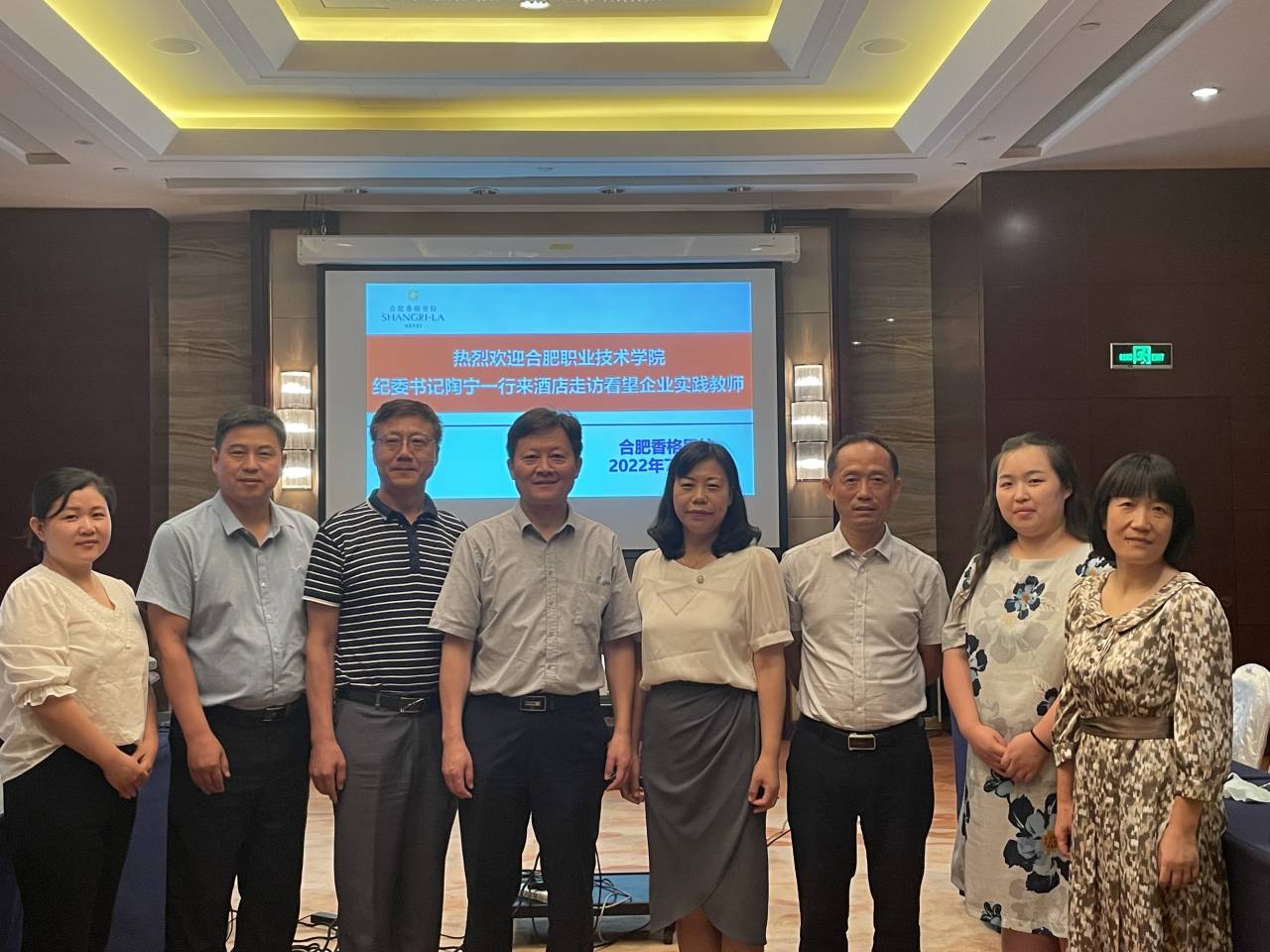 7月21日下午,学校党委委员、纪委书记陶宁带领经贸旅游学院党总支书记梅亚松,院长赵红和副院长刘圣春到合肥香格里拉大酒店看望在该酒店进行暑期企业实践的杨世河、刘娴、张珮玮、杨洋四位教师。合肥香格里拉大酒店人力资源总监刘鑫、前厅部经理方慧、人力资源部主管钱文静等热情接待了陶宁一行。
