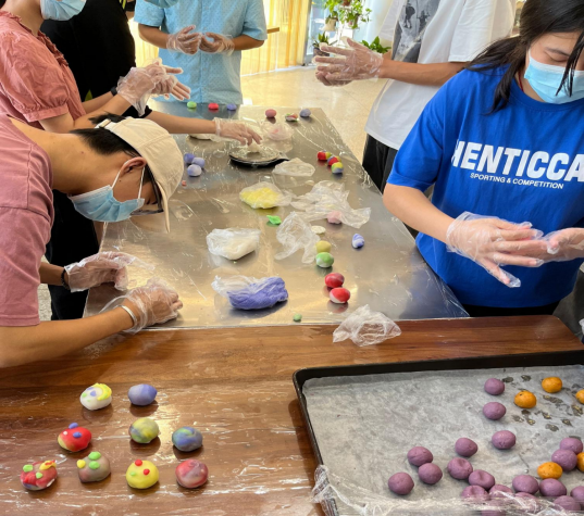 巧手做月饼,用心敬师恩。校学生会同学走进魔幻烘培坊,在烘培师傅的带领下,亲手体验如何制作月饼、蛋糕等甜品。亲手制作月饼,书写小贺卡,为学校教师送上最真挚的祝福,致谢师恩。
