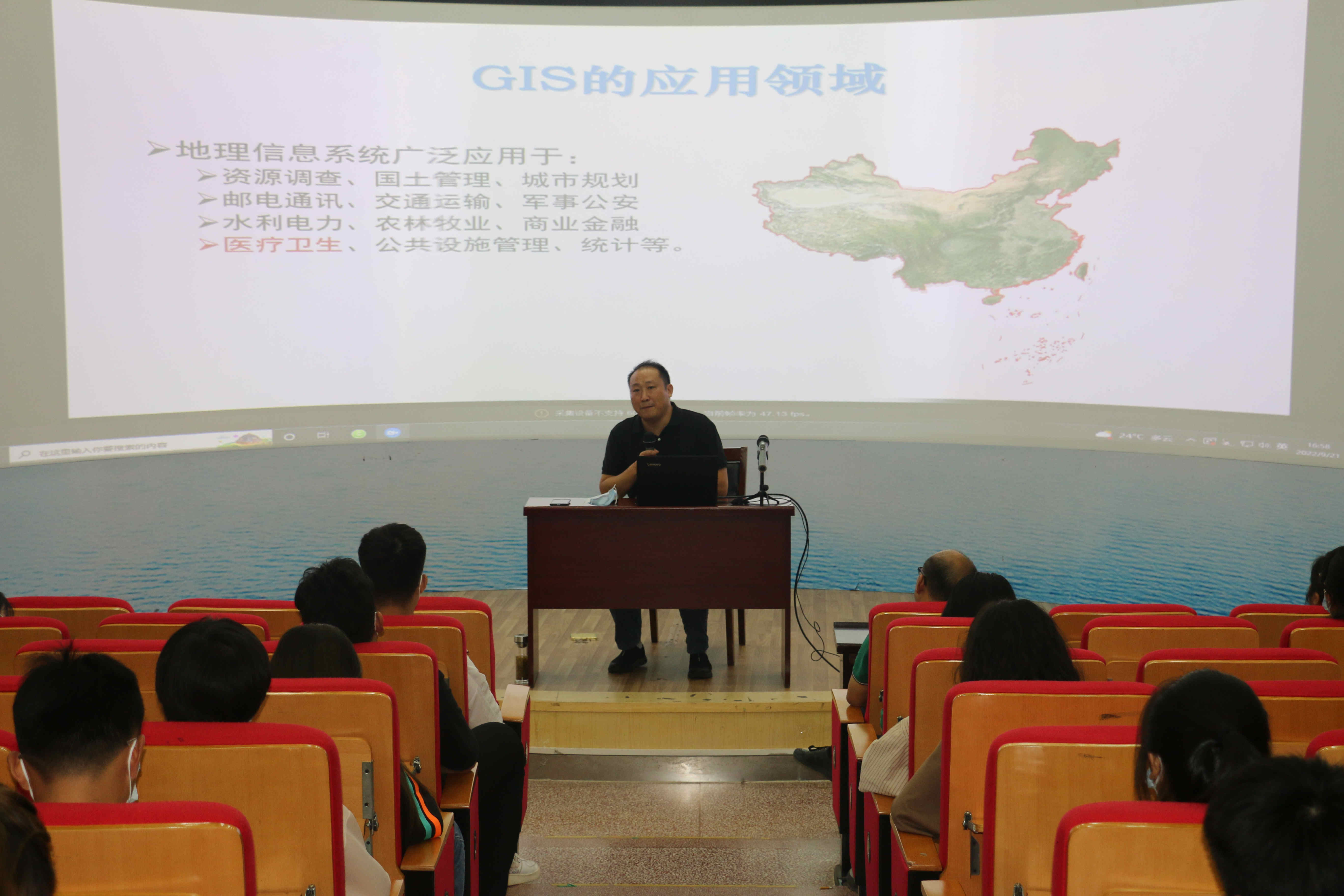 唐主任从地理信息介绍、空间信息获取、在疾病预防控制工作中的应用等三个方面给师生们带来了预防医学专业最新前沿疾病防控新技术。讲授完理论后,唐主任又当场在线演示地理信息系统在新冠预防控制中的应用,操作了精准划定新冠疫情管控区的技术。讲座后又现场与学生们进行了专业学习交流,鼓励学生们学好专业知识与技术,为健康中国、健康安徽做出贡献。