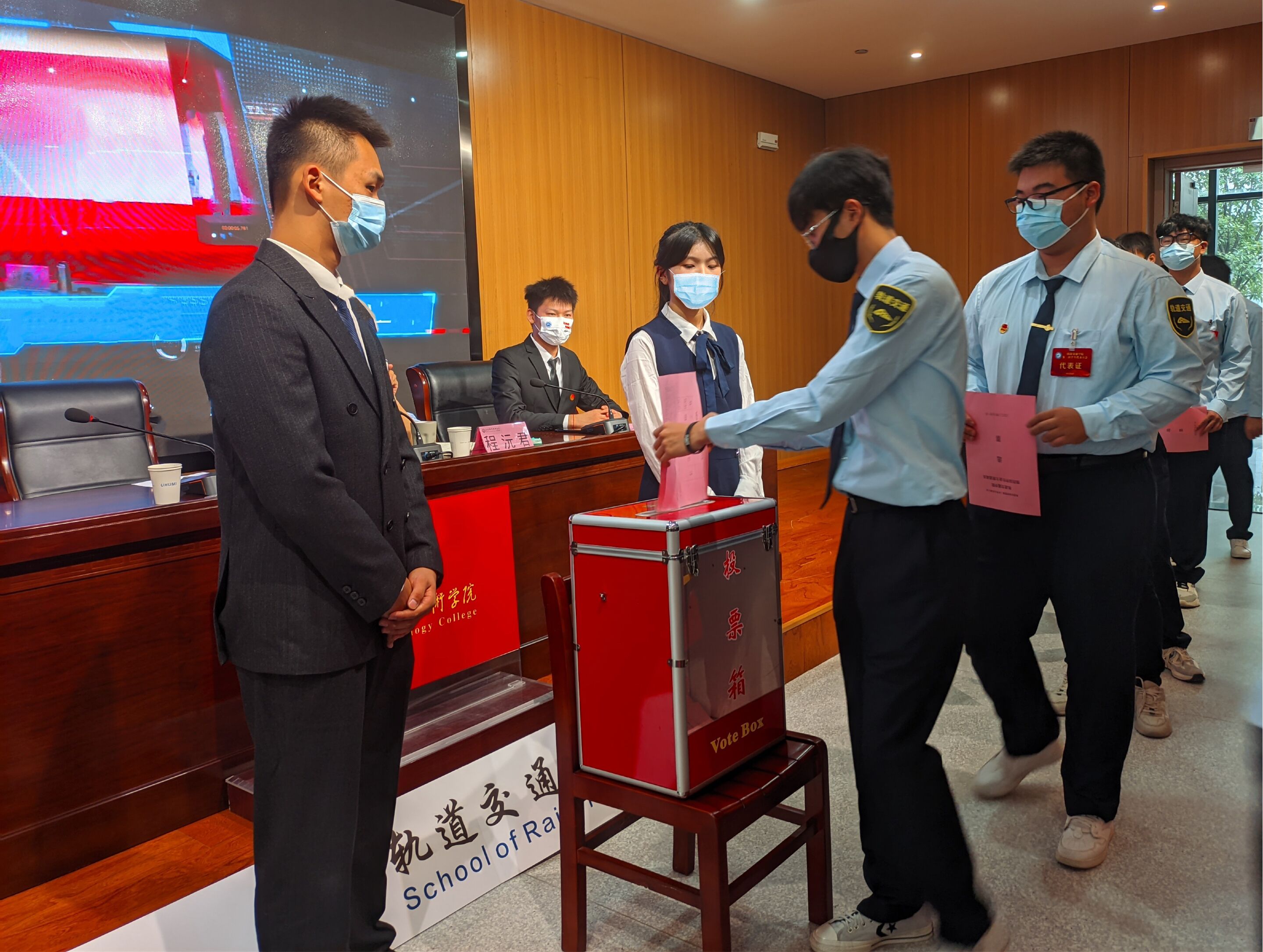大会选举产生了轨道交通学院第四届学生会主席团成员。第四届学生会执行主席郑佳乐发表讲话,他表示将传承第三届学生会的优良传统,开拓创新,全心全意为学生服务。