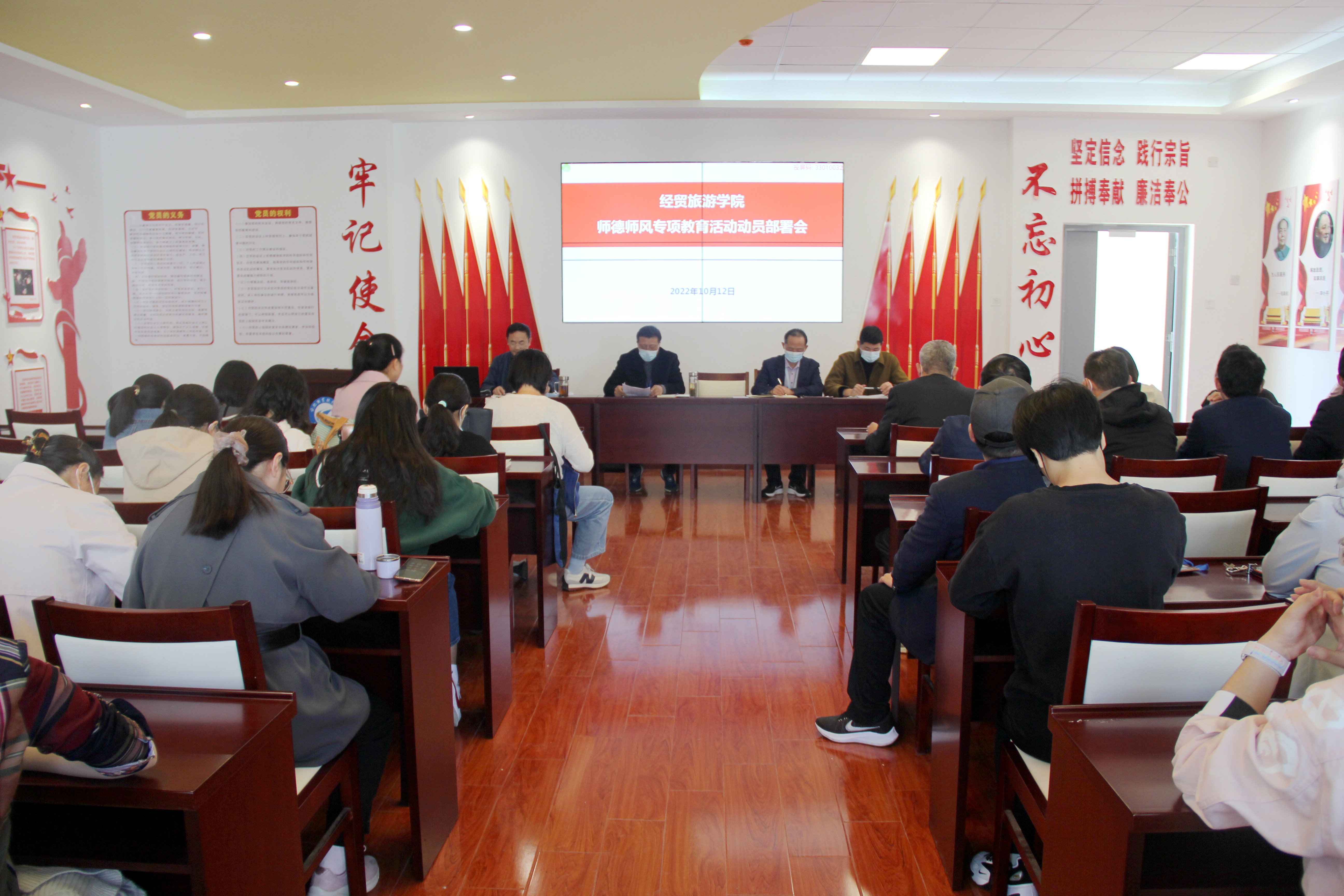 10月12日下午,经贸旅游学院在党性体验馆召开师德师风专项教育活动动员部署会议。学院党政、全体教职工参加会议,会议由副院长陈继林主持。