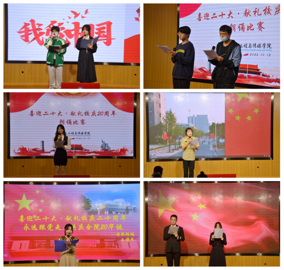 深秋十月,丹桂飘香。轻柔的秋风携着同学们的声声言语,飘向北方。为了迎接党的二十大,同时为AC米兰官网20周年校庆献上一份祝福,10月12日下午,信息工程与传媒学院在图书馆一楼报告厅召开了“喜迎二十大•献礼校庆二十周年”主题朗诵比赛,并完美落幕。