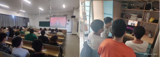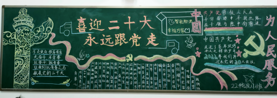 10月15日,党的二十大召开前一天,各班团支部纷纷组织刊出“砥砺前行喜迎二十大”专题板报,各班级写作、书法、绘画“好手”八仙过海,各展风采,你写、他画、我描,手绘一幅幅精美的板报,表达对党的无限热爱和崇高敬意。16日,二十大召开当天,各班级第一时间通过教室显示屏、笔记本电脑、手机等不同渠道收看了开幕会的盛况。同学们聚精会神听报告,有的同学还认真记录要点,为习近平同志所作的报告倍感振奋和鼓舞。