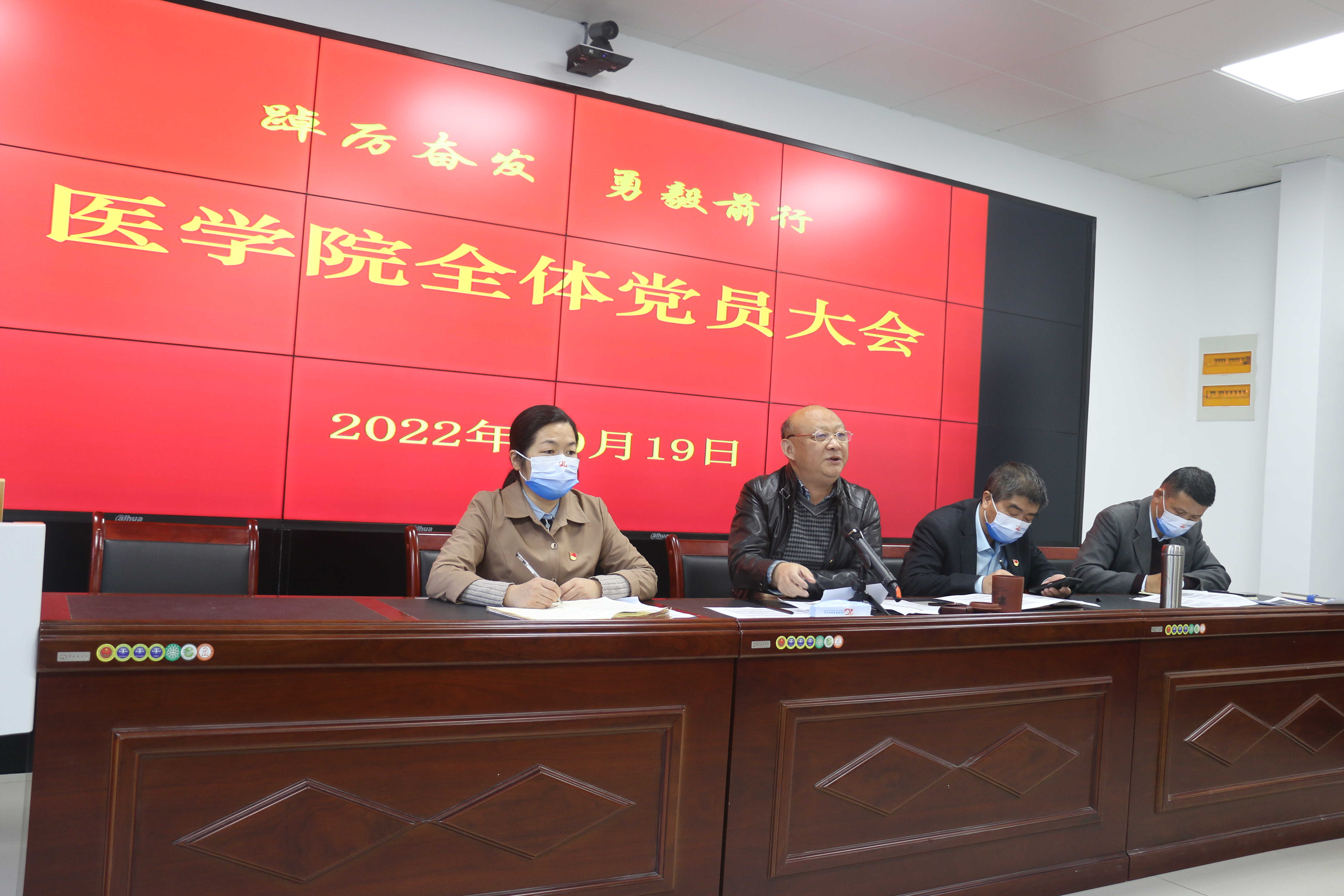 最后,周晓隆带领同志们学习二十大报告新观点、新论断、新思想、新战略、新要求。并围绕新要求对医学院全体党员提出三点要求:一是深刻领会党的二十大精神,将学习宣传贯彻党的二十大精神作为当前和今后一个时期的首要政治任务,促进党风廉政建设和党员领导干部的思想作风建设;二是结合学校实际坚持高质量发展理念,明确学校“十四五”规划重点任务,追求更高质量发展;三是发扬新时代优良师德师风,以饱满热情投入到工作中,将个人的发展与学校的教育事业调到同一频道。