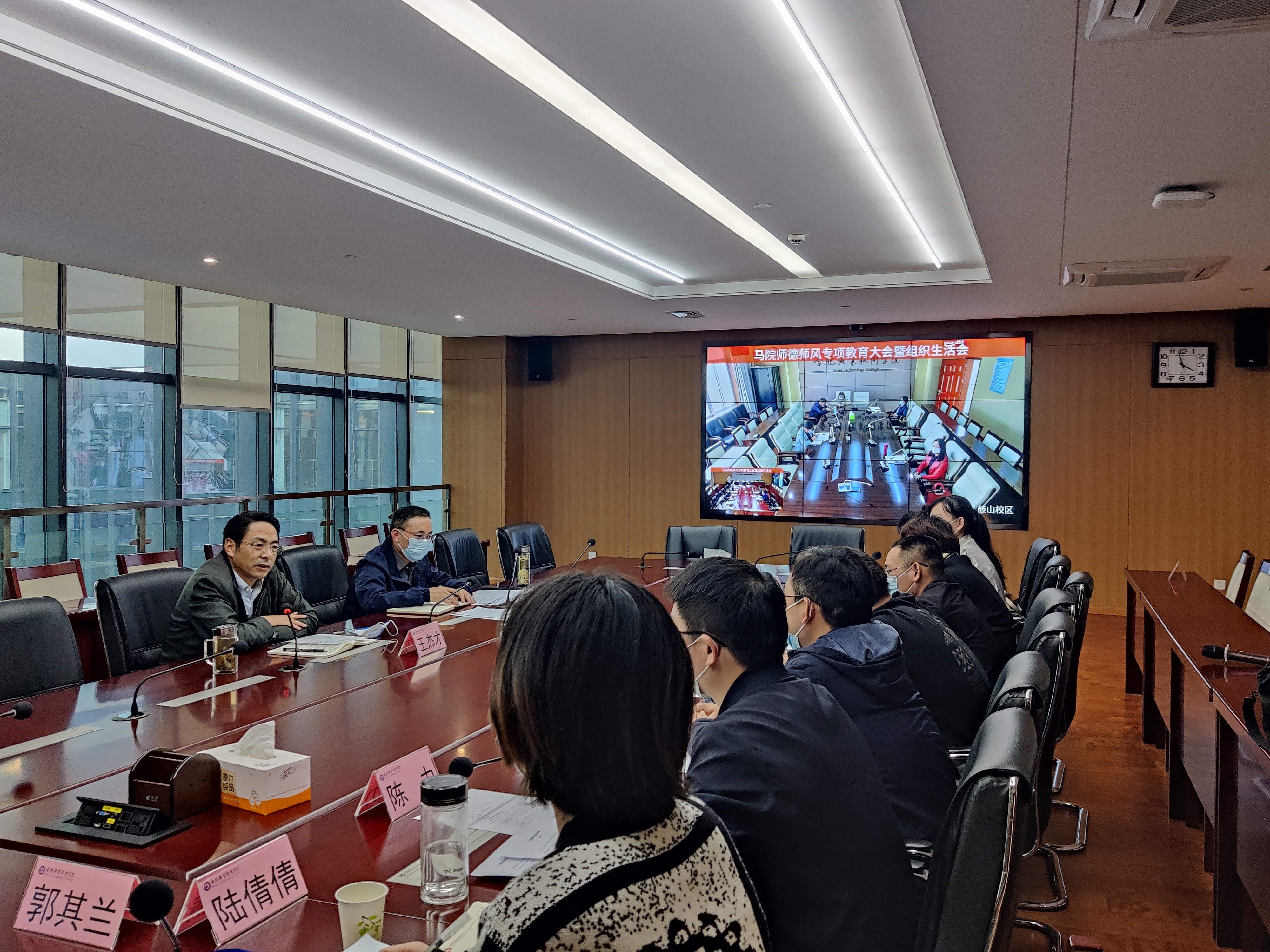 为进一步坚定理想信念,强化学院师德师风建设,提高教师政治思想素质和职业道德水平,结合身边的典型案例,进行自我反思,正风肃纪,以更好的面貌投入到学校的建设和发展中,11月2日,马克思主义学院召开了师德师风专项教育大会暨专题组织生活会。校党委书记王杰才出席会议,马克思主义学院全体教职工和党员参加会议。会议由该院党支部书记王文飞主持。