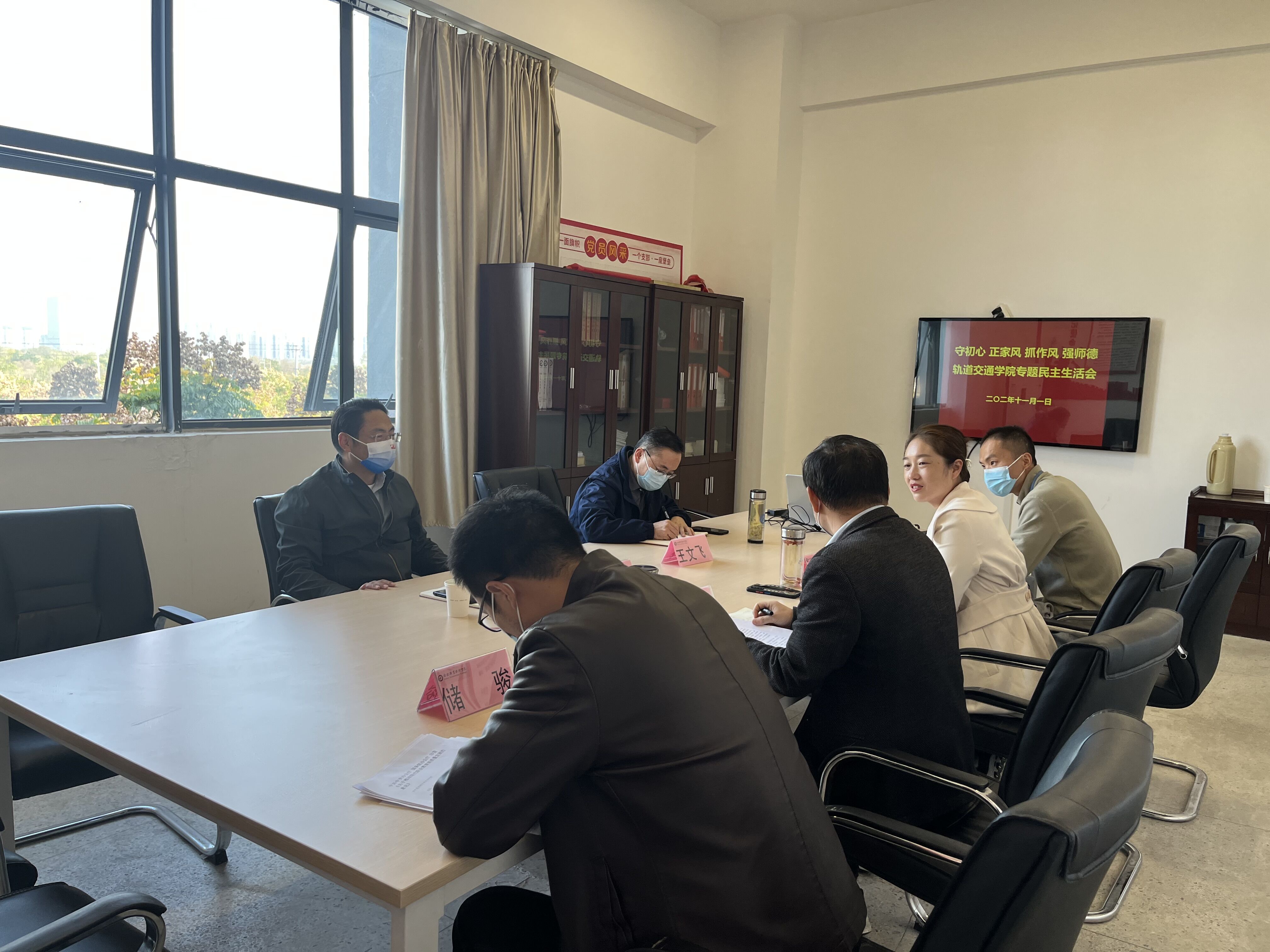 11月1日下午,轨道交通学院党总支在轨道楼301会议室召开2022年度专题民主生活会,校党委书记王杰才到会指导,该院总支全体委员参加会议,会议由党总支书记佘海月主持。