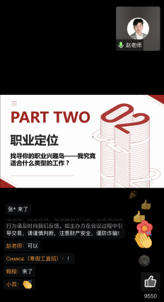 此次宣讲会还邀请了国际注册职业生涯导师、国家认证 生涯规划师、高级培训师赵艾伦老师从职业旅程、职业定位、职场策略和职业受益四个方面指导学生做好职业生涯规划。