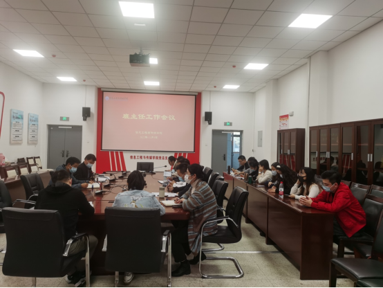 为认真总结在校班级学生日常管理和思想政治工作,查摆问题,找出差距,明确下一阶段工作的目标和重点,11月9日下午,信息工程与传媒学院在信息楼一楼会议室召开在校班级班主任工作会议,会议由学院党总支副书记刘泽发主持。共20名专职辅导员、在校班级班主任参加了会议。