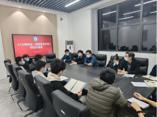 为进一步加强校企、师生间的沟通,厘清有效的教学方法和学习方法,激发学生学习兴趣,提升就业能力,11月23日晚,信息工程与传媒学院网络安全产业学院开展了21计网专业(网络安全方向)师生座谈会。师生代表畅所欲言,共同探讨学生希望老师如何教,老师们希望学生怎样学,总结最优教与学模式。该院院长章炳林、学科带头人张平华,辅导员杨黎鸣、合肥数字奇安企业老师汪家健、祁甜甜、方康和来自21计网1班2班的7名学生代表参加了座谈会。