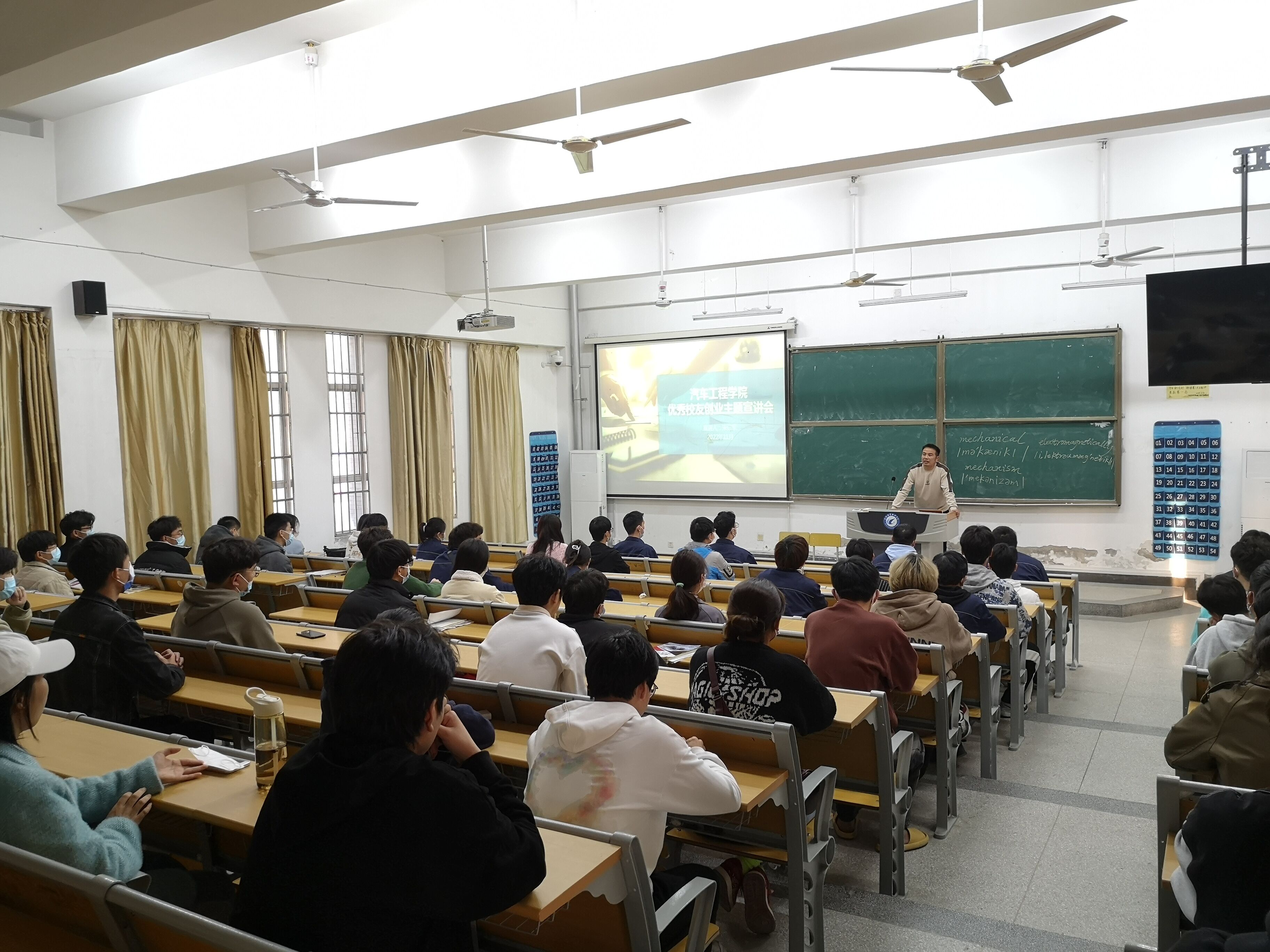 为深入贯彻党中央、国务院和省委、省政府“稳就业”“保就业”决策部署,全面落实习近平总书记关于“创新创业创造”的重要论述,积极引领大学生培育创业意识、增强创业能力,营造良好的创业氛围,11月24日下午,汽车工程学院在鼓山校区教学A楼一楼阶梯教室举行优秀校友创业主题宣讲会。该院2011届优秀毕业生、合肥市优源汽车有限公司总经理宋仁军应邀给该院2021级各班级学生代表进行大学生创业主题宣讲。