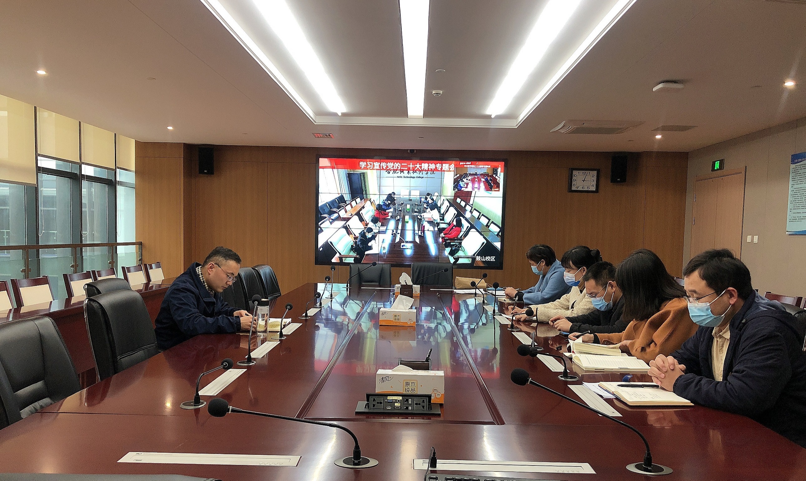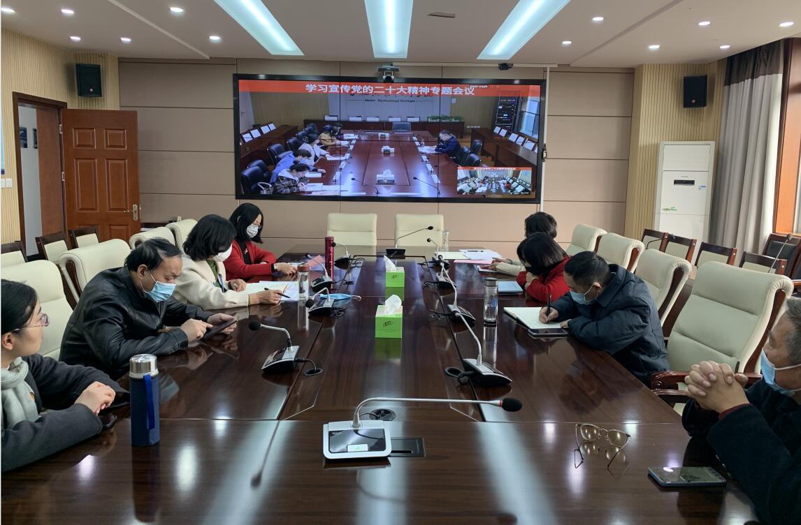 为全面深入学习贯彻党的二十大精神, 11月23日下午,马克思主义学院在汇心湖校区627会议室、鼓山校区三楼会议室开展学习宣传党的二十大精神专题工作会议。学院党支部书记王文飞及全体教师参加了会议,会议由马克思主义学院院长靳玉琼主持。