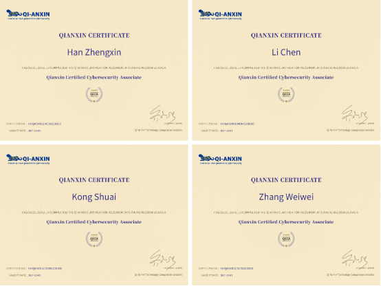为保证此次考证工作的正常开展,信息工程与传媒学院期初进行了统计规划,之后网络安全产业学院组织召开动员会,讨论制订实施方案、工作步骤,严密做好疫情防控等工作。校企教学团队进行了为期半个月的定向考前培训,通过培训使同学对网络安全的知识和技能得到提升,使得参加认证考试的20位同学全部顺利通过考试,获得了奇安信网络安全助理工程师认证证书。