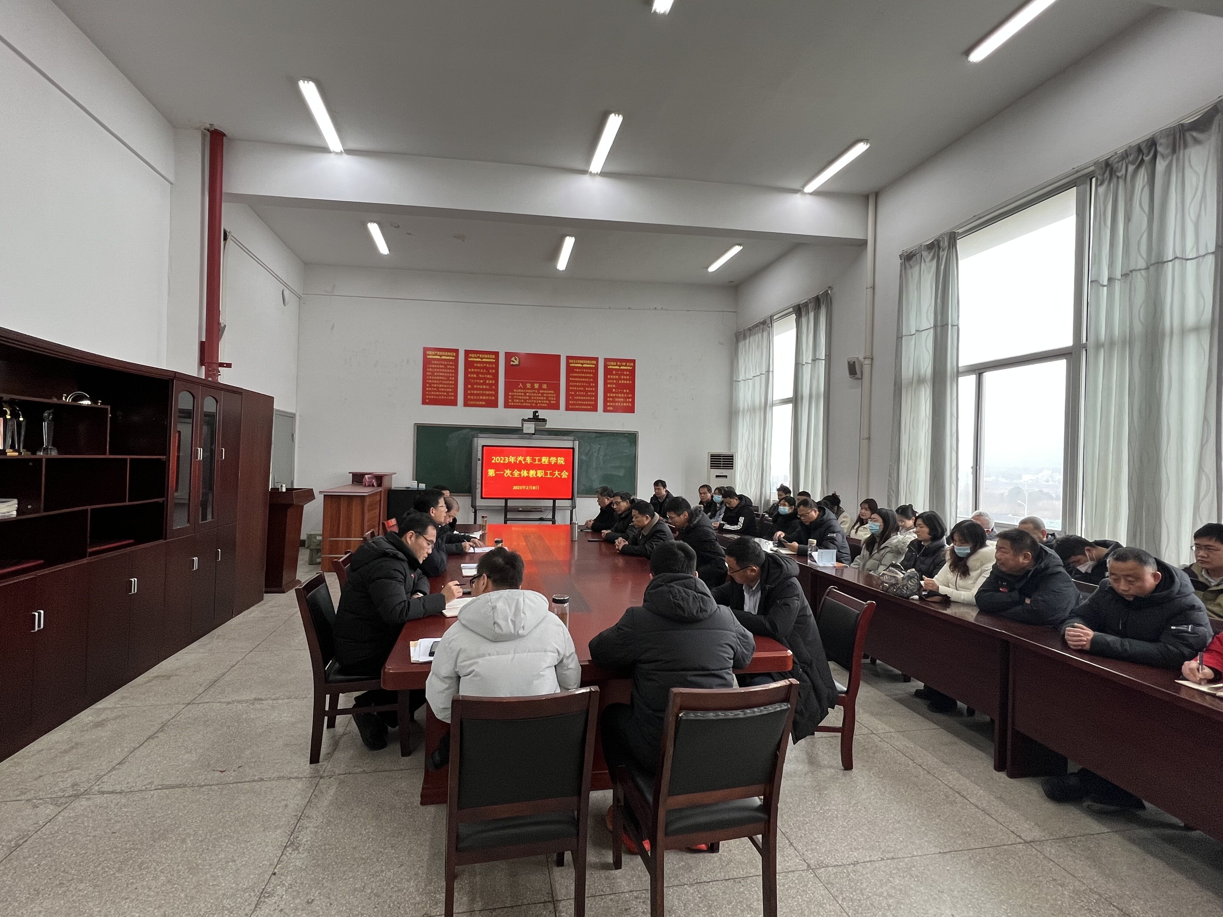 2月8日下午,汽车工程学院在四楼会议室召开全体教职工大会,会议由学校党委委员、办公室主任,学院党总支书记王海主持,学院党政主要负责同志、全体教职员工参会。
