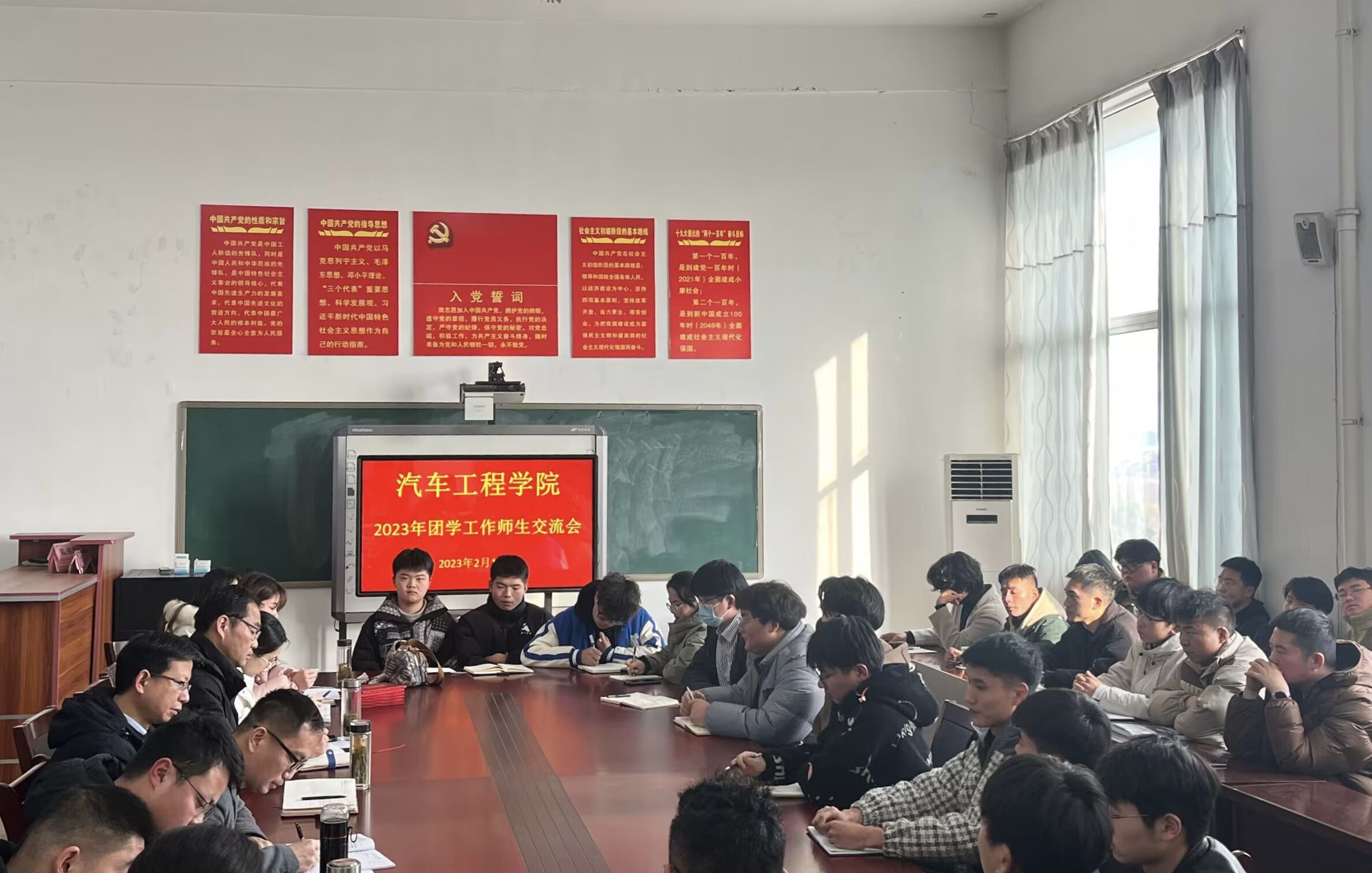 2月15日下午,汽车工程学院开展了2023年第一次团学工作师生交流会,会议由该院学管办主任张升元主持,学校党委委员、办公室主任、学院党总支书记王海,院党总支副书记刘靖,院团总支书记毛炜,全体专职辅导员,学生会主要干部和在校班级班长参加了此次会议。