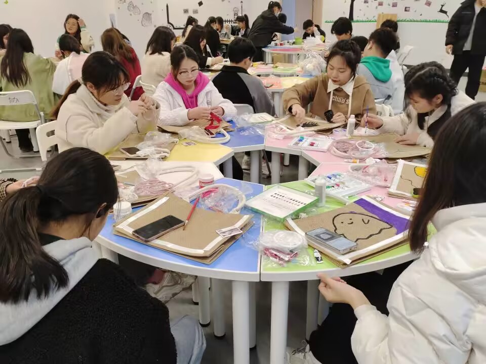 3月3日,手工DIY活动在大学生活动中心开展,志愿者们一边观摩制作过程的视频、一边挑选合适的颜料、画笔等工具进行制作,大家奇思妙想,各有创意,现场其乐融融。