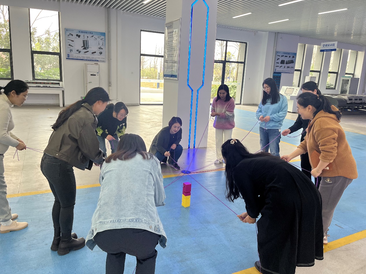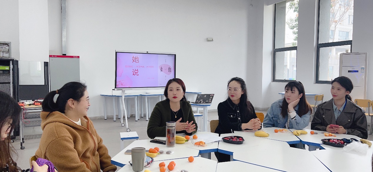 活动分为两部分,第一部分为“她说”主题分享,首先,由党总支书记佘海月为大家带来了“亲疏有度,远近相安”为主题的婆媳相处之道,让大家了解“爱、包容和换位思考”是婆媳相处的制胜法宝。随后,梁雯婷老师为大家来主题为“力量、汗水、美丽,同属于女性”的自我管理方法,为大家分享健身和美妆的的小妙招。女职工们在轻松愉快的氛围中敞开心扉、畅所欲言。第二部分“她做”破冰游戏,孙月老师组织大家完成“合力建塔”“蒙眼互打”的小游戏,活动现场老师们欢声笑语,热闹非凡,大家在轻松和谐的氛围中享受着运动的快乐,尽情展示巾帼风采。