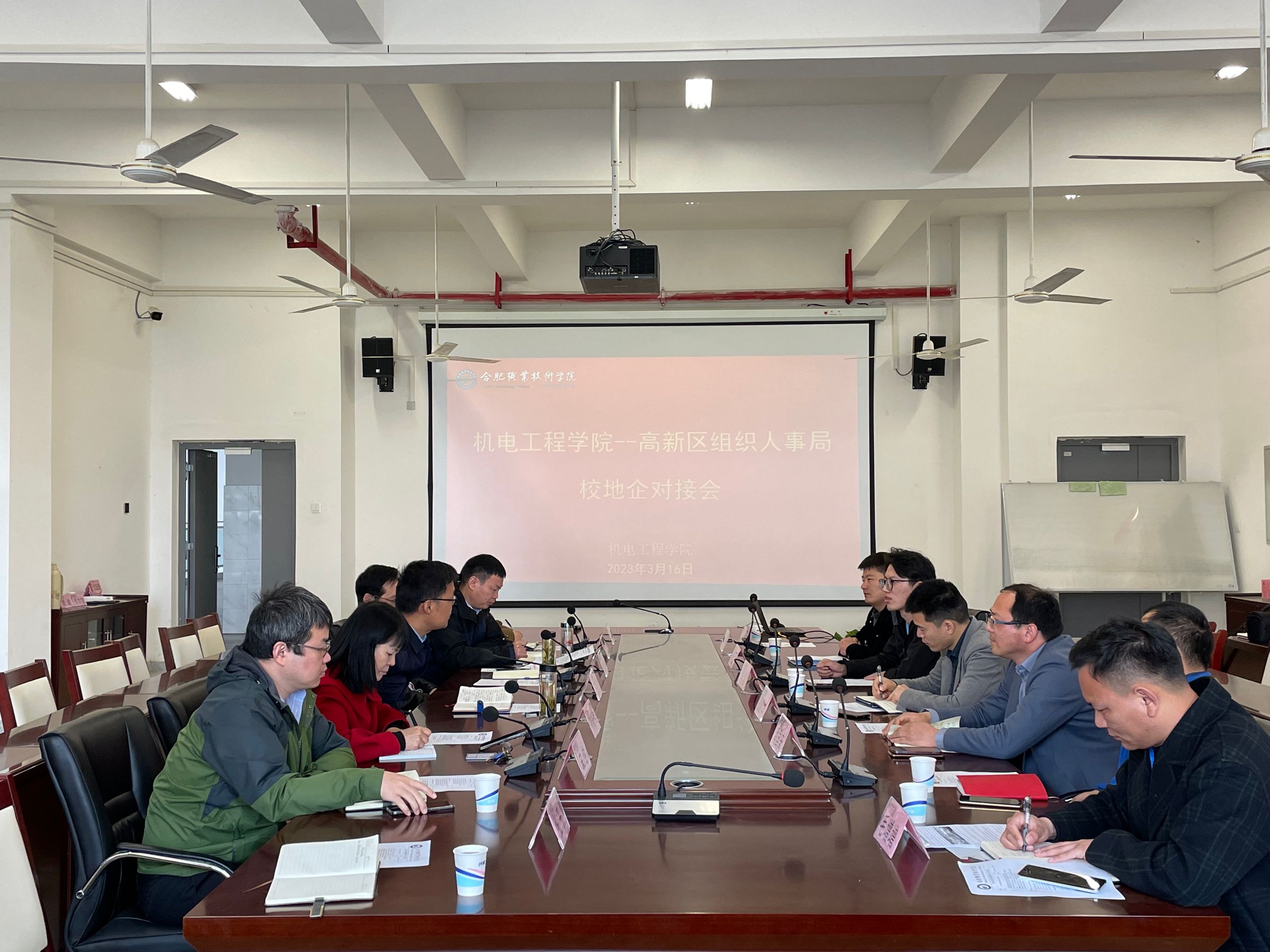 3月16日上午,高新区组织人事局就业处领导率高新区就业创业一站式服务中心、安徽一天电气技术股份有限公司、安徽威灵汽车部件公司、安徽美芝制冷设备有限公司和合肥凯邦电机有限公司一行来我院洽谈校地企合作。机电工程学院党政负责人及相关老师参与了洽谈。机电工程学院院长胡木林主持了会议。