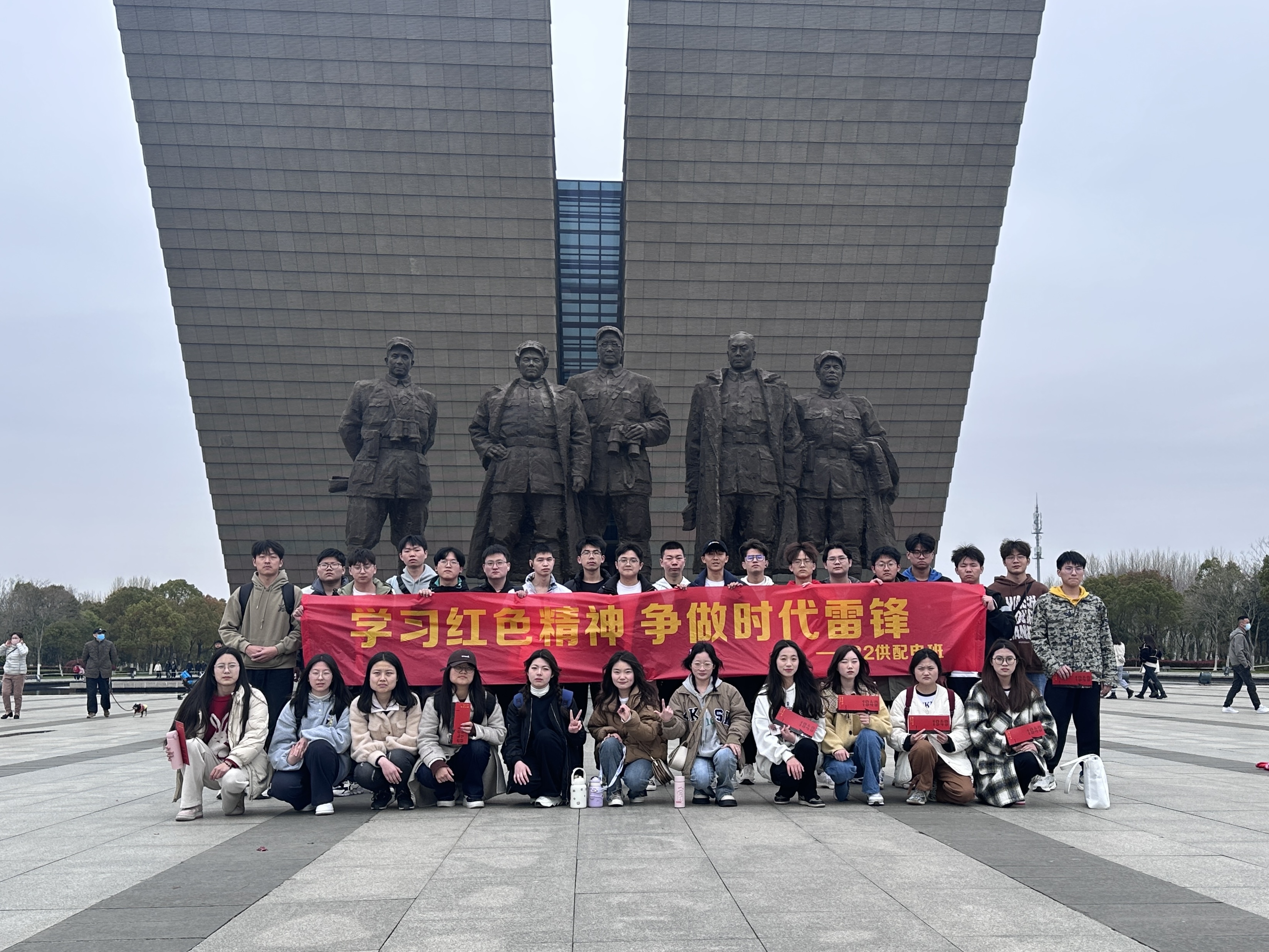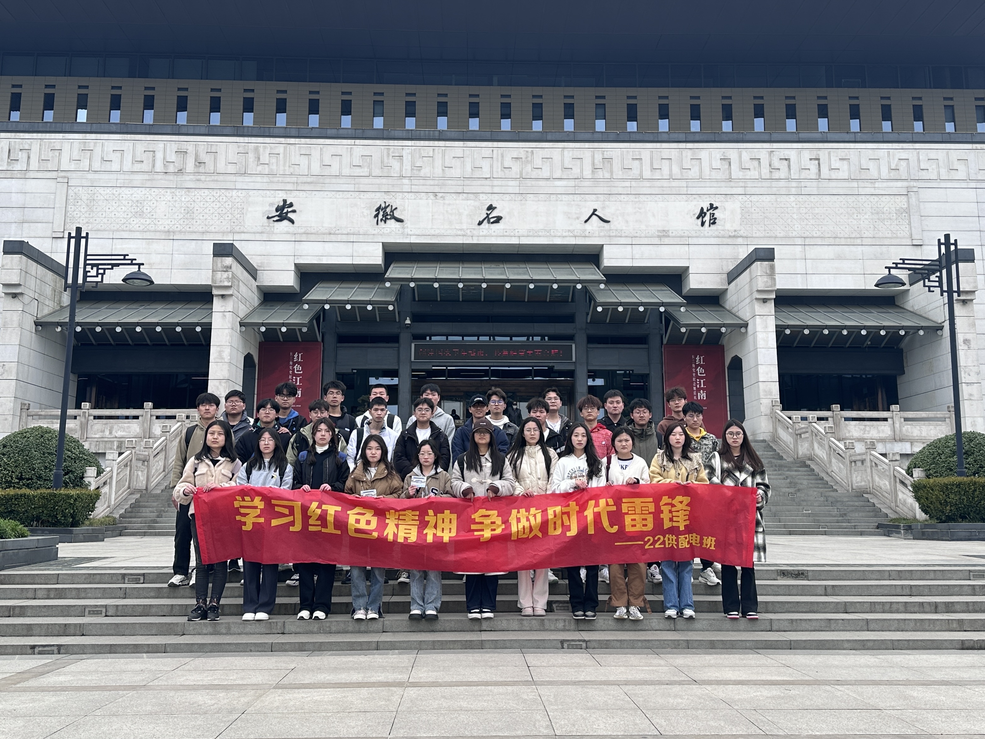 为缅怀革命先烈的红色精神和英勇事迹,大力弘扬革命精神和爱国主义精神,3月25日,在雷锋月与清明节的交汇之际,轨道交通学院 22 级城轨供配电班开展了“学习红色精神 争做时代雷锋”的社会实践活动,参观爱国主义教育基地,感受红色文化,缅怀革命先烈。同学们前往渡江战役纪念馆及安徽名人馆进行红色学习活动,沿着习近平总书记考察时的足迹,重温习近平总书记重要讲话指示精神。