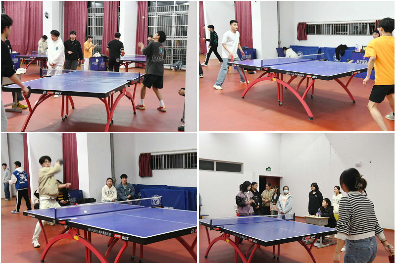 本次比赛分为男子单打、女子单打、团体赛三个大项,参赛选手来自各学院大学生乒乓球运动爱好者,团体参赛人数115人,单打参赛人数130人,参赛人数创历届以来的新高。比赛采用淘汰制,现场精彩纷呈,高潮迭起,选手们个个充满激情和斗志,表现出强烈的进取精神。灵活的动作,娴熟的技巧,拉球、抽球、扣球,充满悬念;发球抢攻、侧身拉球、直板横打、攻球扣杀,精彩的比赛赢得了观众们的阵阵掌声;赛场上中不时传出热烈的喝彩声,兴奋的“好球”声连连不断。在比赛间隙,吴俊峰也加入到同学们的切磋之中,参赛选手纷纷站在球台边为老师加油助威。