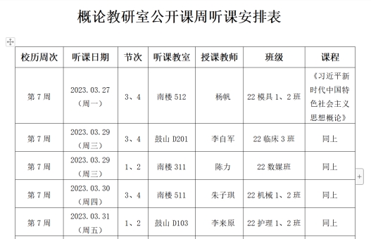 为进一步提高教师的专业素养和教学能力,增进《习近平新时代中国特色社会主义思想概论》课教师间的学习交流,切实提升思政课教学效果,马克思主义学院“概论”教研室于3月27日至3月31日组织开展了公开课教学活动周。马克思主义学院院长靳玉琼、部分二级学院领导、老师、概论课教研室全体教师及部分思政课教师参加了本次活动。