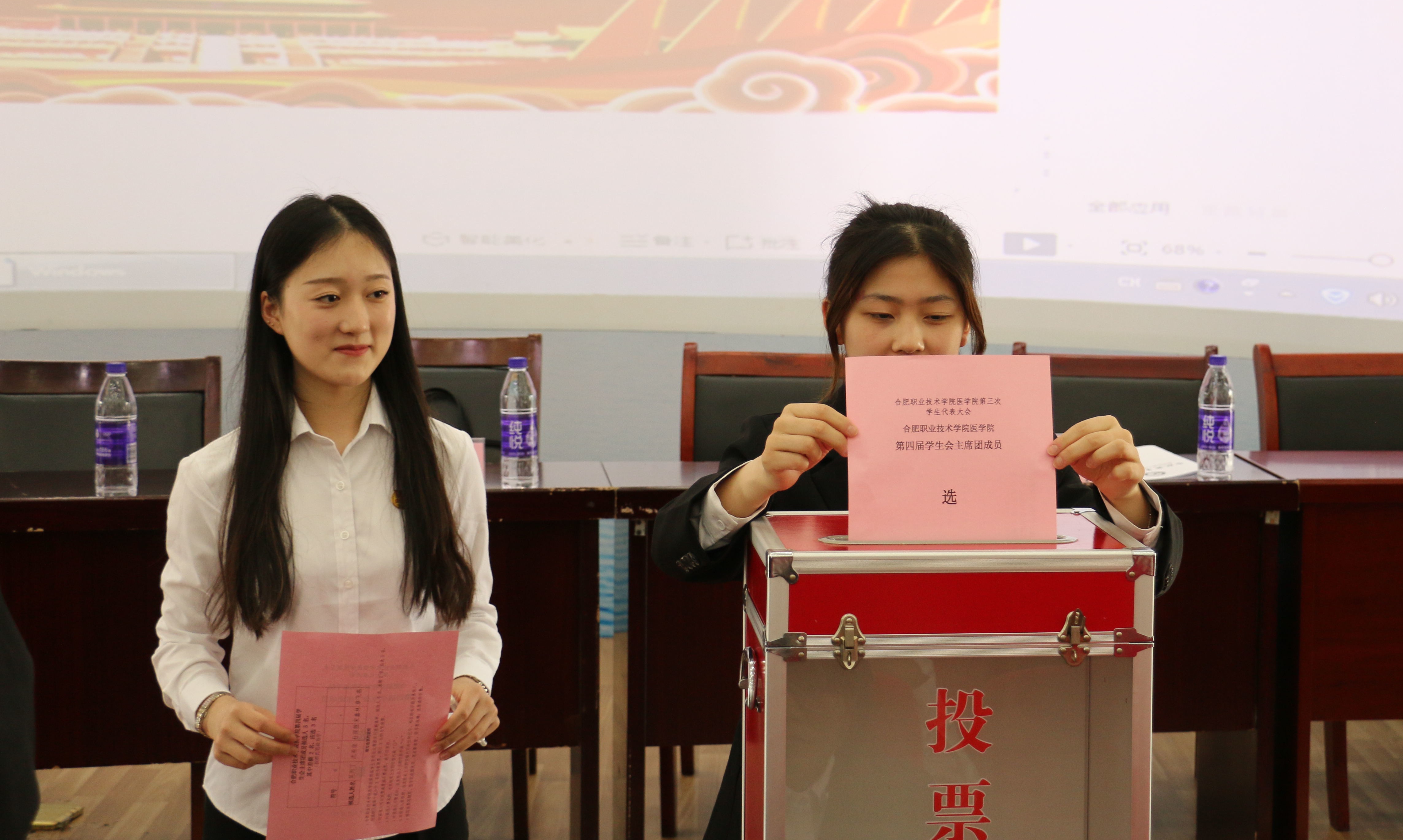 医学院第三次学生代表大会在团歌声中画上圆满句号。医学院学生会将一如既往秉承全心全意为同学们服务的根本宗旨,紧密围绕学校中心工作,团结和凝聚医学院学子听党话、跟党走,贯彻“崇德 重技 求实 创新”的校训,珍惜青春,汇聚力量,坚定理想信念、勇担历史使命,在冲刺职教本科、实现中华民族伟大复兴中国梦的征途上谱写青春华章!(供稿:医学院 编辑:杨璨)