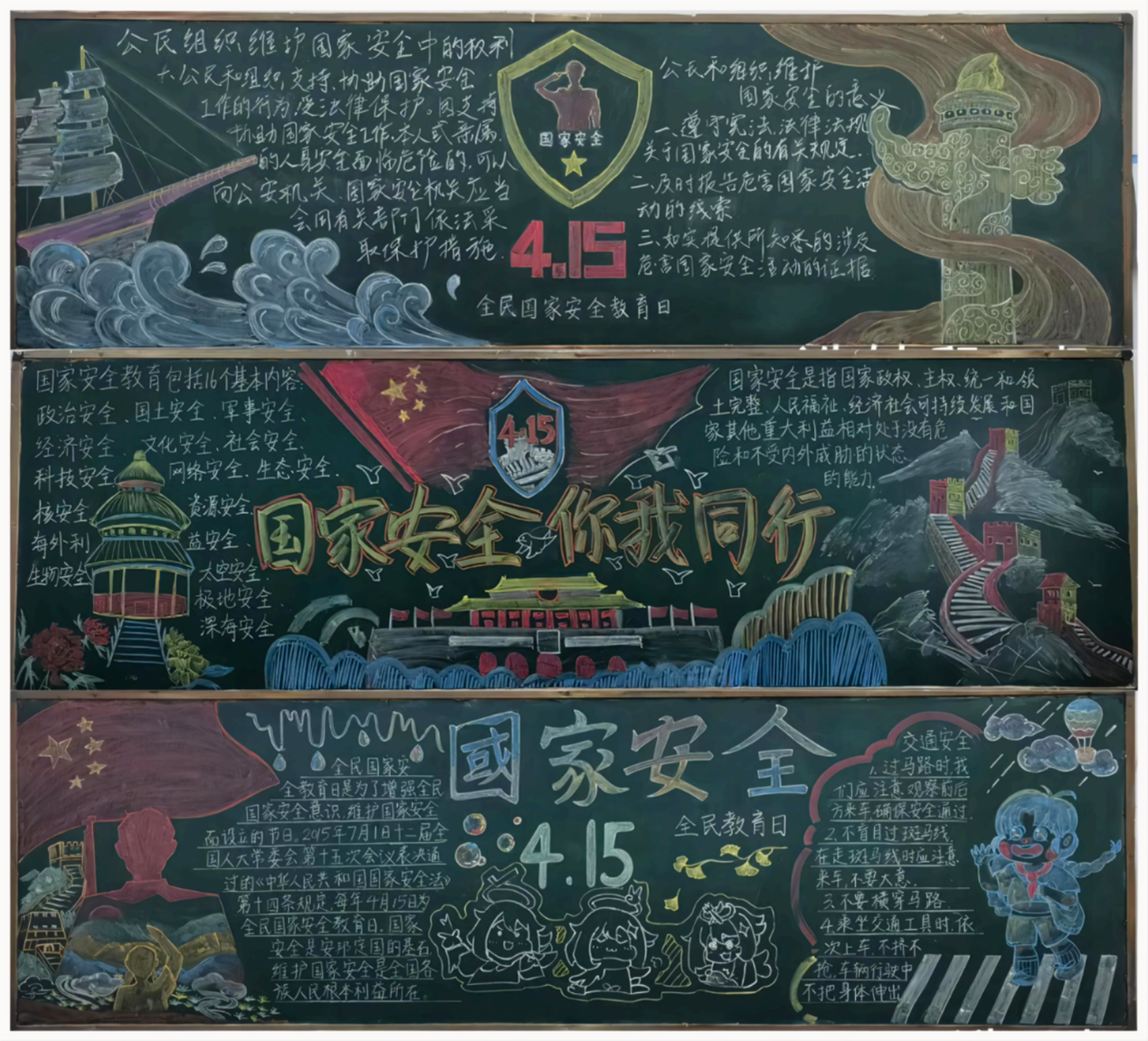 组织开展“4·15全民国家安全教育日”主题板报评比,各班级以图文并茂的黑板报向同学们宣传国家安全知识及相关政策法规,营造了良好的学习宣传氛围。