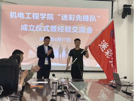 会议在庄严的国歌声中拉开帷幕,杨晨首先介绍了机电工程学院“迷彩先锋队”的概况、功能定位和建设目标。该院团总支书记张开宣读“迷彩先锋队”队员名单,党总支副书记丁迎春为队伍授旗。