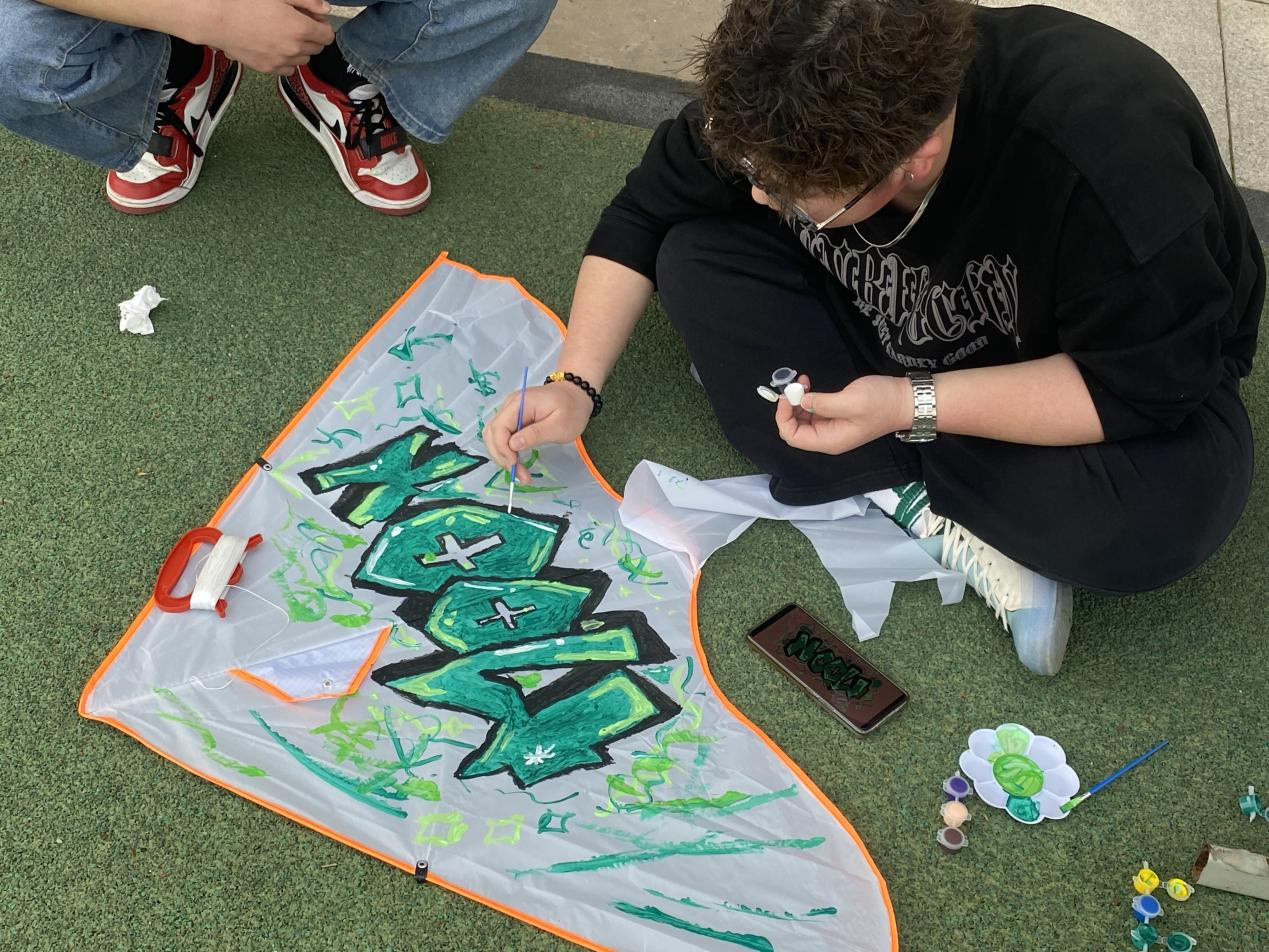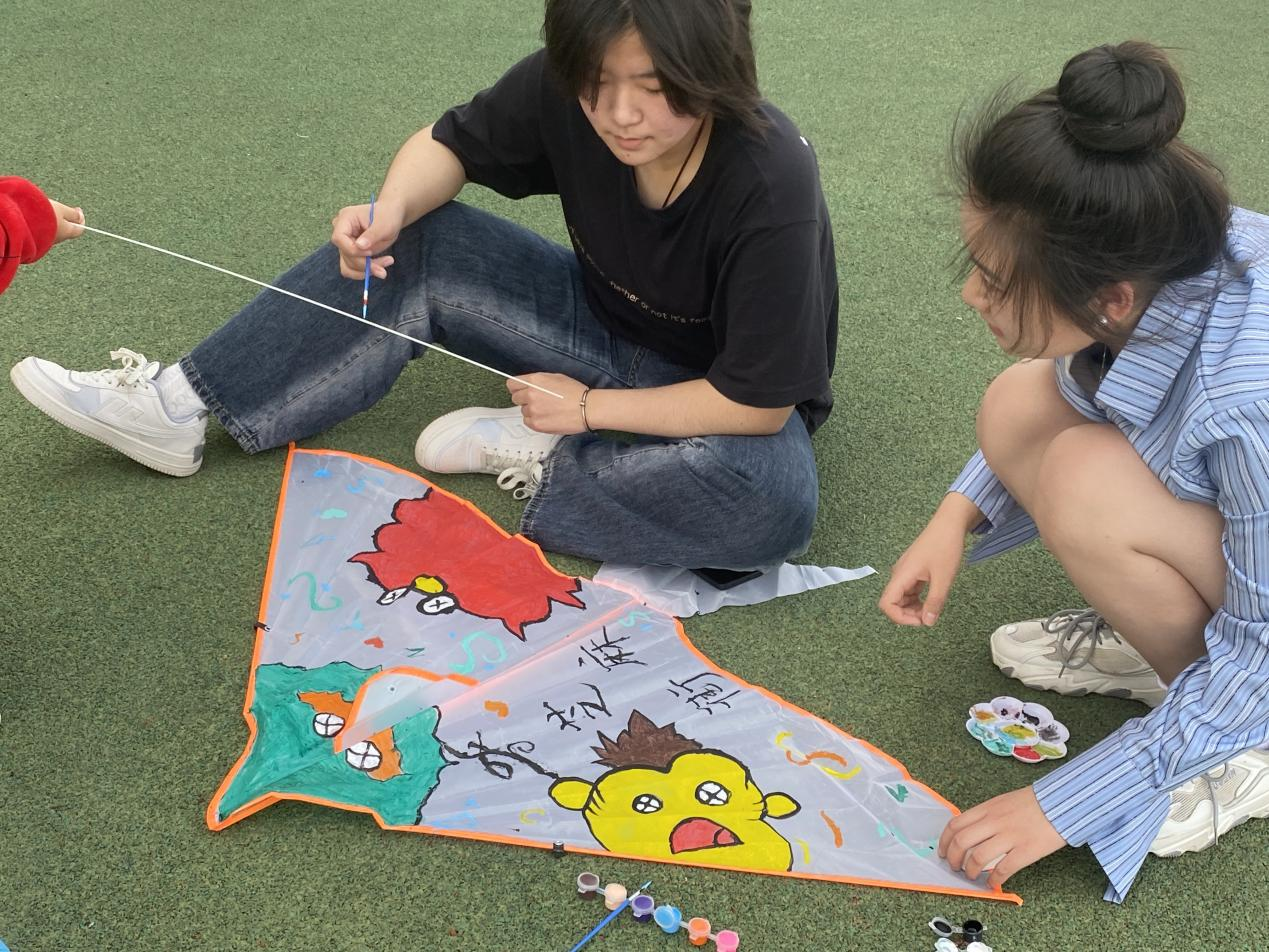 活动现场,学生会志愿者耐心指导大家进行签到,分发风筝。同学们领取到风筝及绘画工具后,来到绘画区,席地而坐,用画笔蘸取五颜六色的颜料,尽情发挥创意,设计自己团队的专属图案。长达40分钟的设计时间过去后,一幅幅生动形象的图案跃然纸上。同学们沐浴着灿烂的阳光,呼吸着新鲜的空气,在多彩的蓝天下,共同把自己亲手创作的风筝放飞在蓝天下。