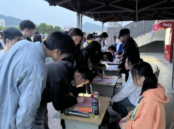傍晚,志愿者们早早来到活动现场,搭帐篷、摆桌子、挂彩灯,各司其职,为活动准备着。参赛同学陆续到场,他们个个摩拳擦掌、跃跃欲试,报名处瞬间就排起了长队。报名、签到、领取荧光棒,列队跟随着音乐做准备活动,一切井然有序。