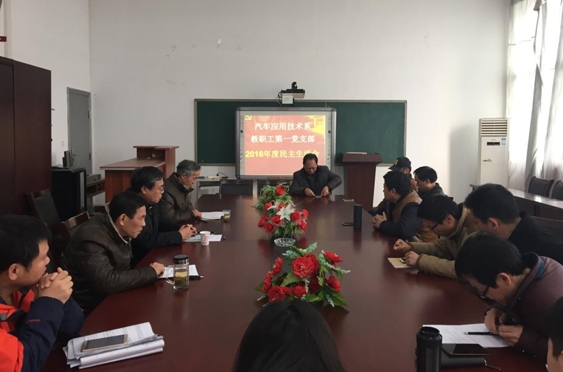 根据学院党委和汽车应用技术系党总支的统一部署,元月12日下午,汽车应用技术系教工第一党支部在工程楼会议室召开组织生活会议,就深入贯彻学习党的十八届六中全会精神,结合“两学一做”和“讲看齐、见行动”学习教育的要求,紧紧聚焦“党员的先锋模范作用”,开展党性分析,通过自我省视、自我调整,自我教育、自我提高、自我完善、总结经验,找出差距,进一步提高思想认识和工作能力。学院党委委员、纪委书记金辉同志,汽车应用技术系教工第一党支部全体党员参加会议。会议由教工第一党支部书记胡木林同志主持。