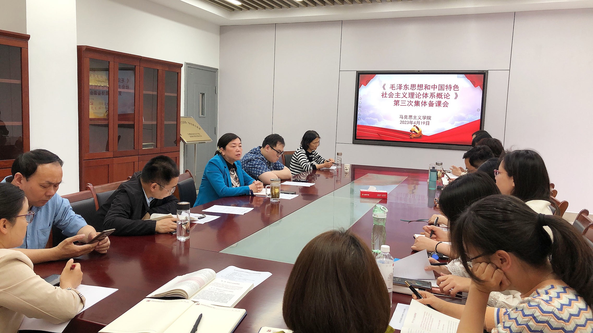 为深入学习贯彻党的二十大精神,提升思政课的整体教学水平,4月19日下午,马克思主义学院在鼓山校区会议室召开教学工作会议,学院全体教师及部分专职思政课教师参加了会议,会议由该院院长靳玉琼主持。