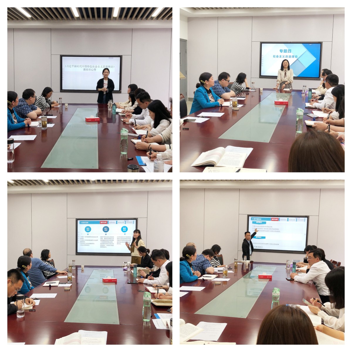 集体备课有深度。根据集体备课方案和授课计划的统一安排,此次集体备课会由金玲老师、吴敏洁老师和胡朋老师针对《毛泽东思想和中国特色社会主义理论体系概论》中第三章、第四章和第五章内容进行整体设计,并对各专题的教学理念、教学设计、教学过程和教学方法进行了介绍,梳理了框架设计和教学思路,对具体内容进行了精彩说课。