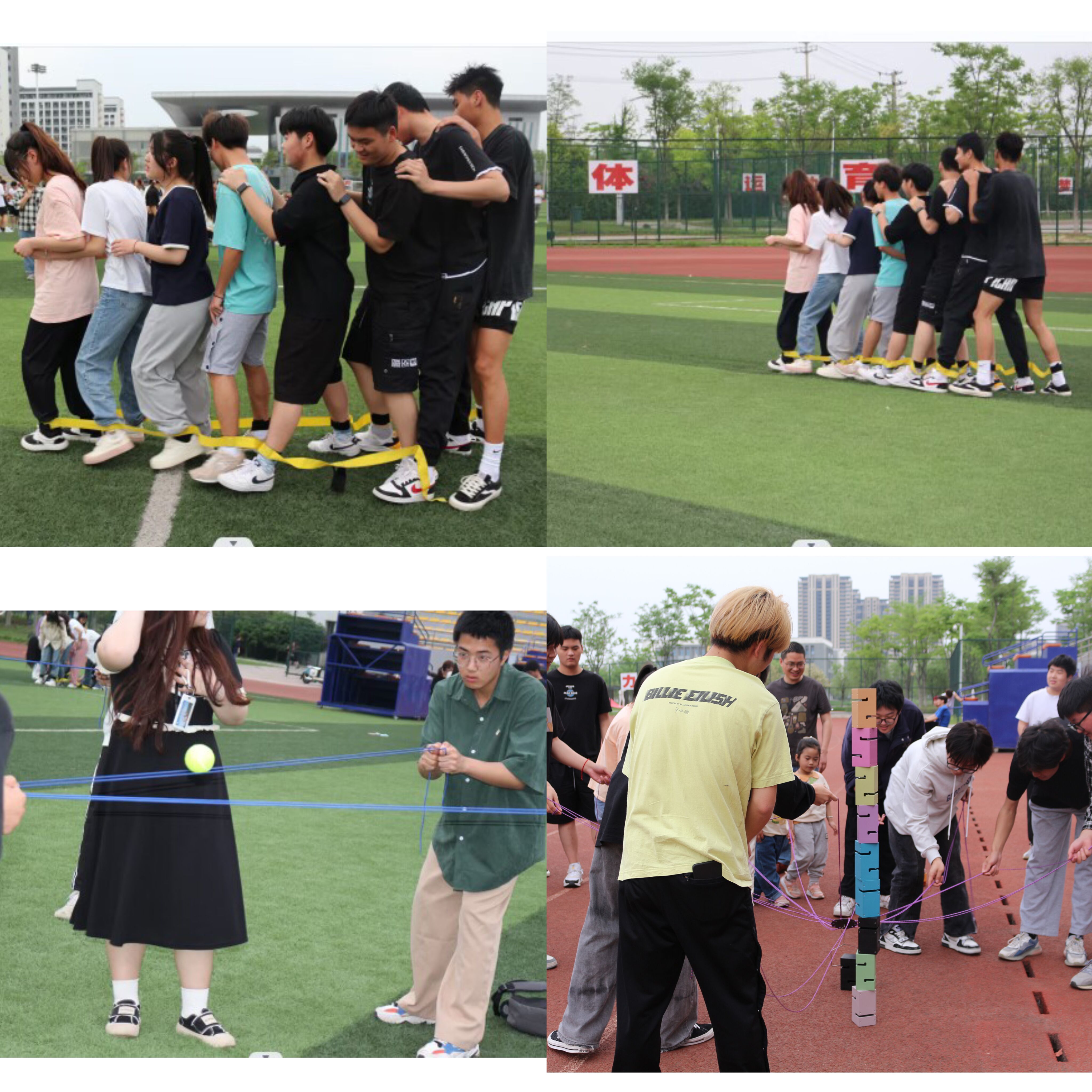 此次运动会围绕“与爱同行 共同成长”开展了趣味拔河、击鼓颠球、摸石过河、珠行万里、轨道运球、巨人脚步和合力建塔七项活动。同学们积极响应,16个班级报名参加运动会。
