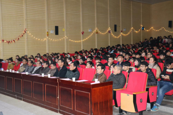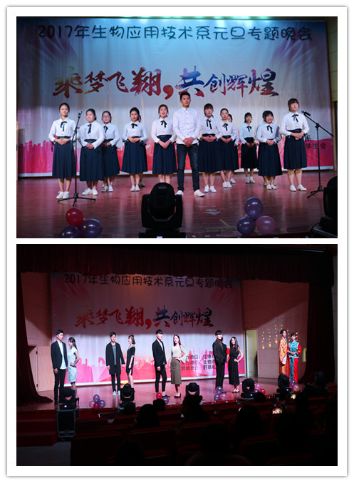 晚会延续生物系传统,首先播放了学生精心制作的开场视频,记录了16级新生自9月入学以来经历的点滴生活。报到、军训、迎新晚会、运动会、排球赛、辩论赛等场景,无一不引起师生共鸣,拨动回忆的琴弦。每个新生班级还录制了新年祝福,一张张笑脸荡漾着青春的气息,寄托着希望与未来。