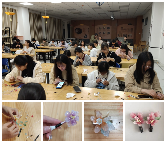 制作中,同学们沉醉于珠翠钗环中的传统手工艺术制作的过程之中。提高了自己的动手能力,缓解了日常学习的压力;展现出自我创造力的同时,也为大学生的校园生活增添些许“艺术味道”。(供稿:信息工程与传媒学院 编辑:杨璨)