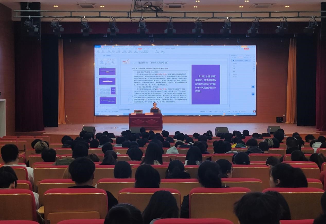 韩长发简要梳理了项目管理与工程造价关系,结合行业热点分析了工程造价和项目管理专业未来岗位的发展趋势,数智化全过程工程咨询相关内容,讲解了基于传统的DBB模式下工程造价基本概念。韩长发分析了基于行业热点下面临的机遇和挑战,并向现场学生提出了几点建议,一是基于传统业务脚踏实地练好基本功,做到学以致用;二是放开视野,在挑战的背景下积极做好跨界融合准备;三是学习与实践过程中要力争做到知其然知其所以然。