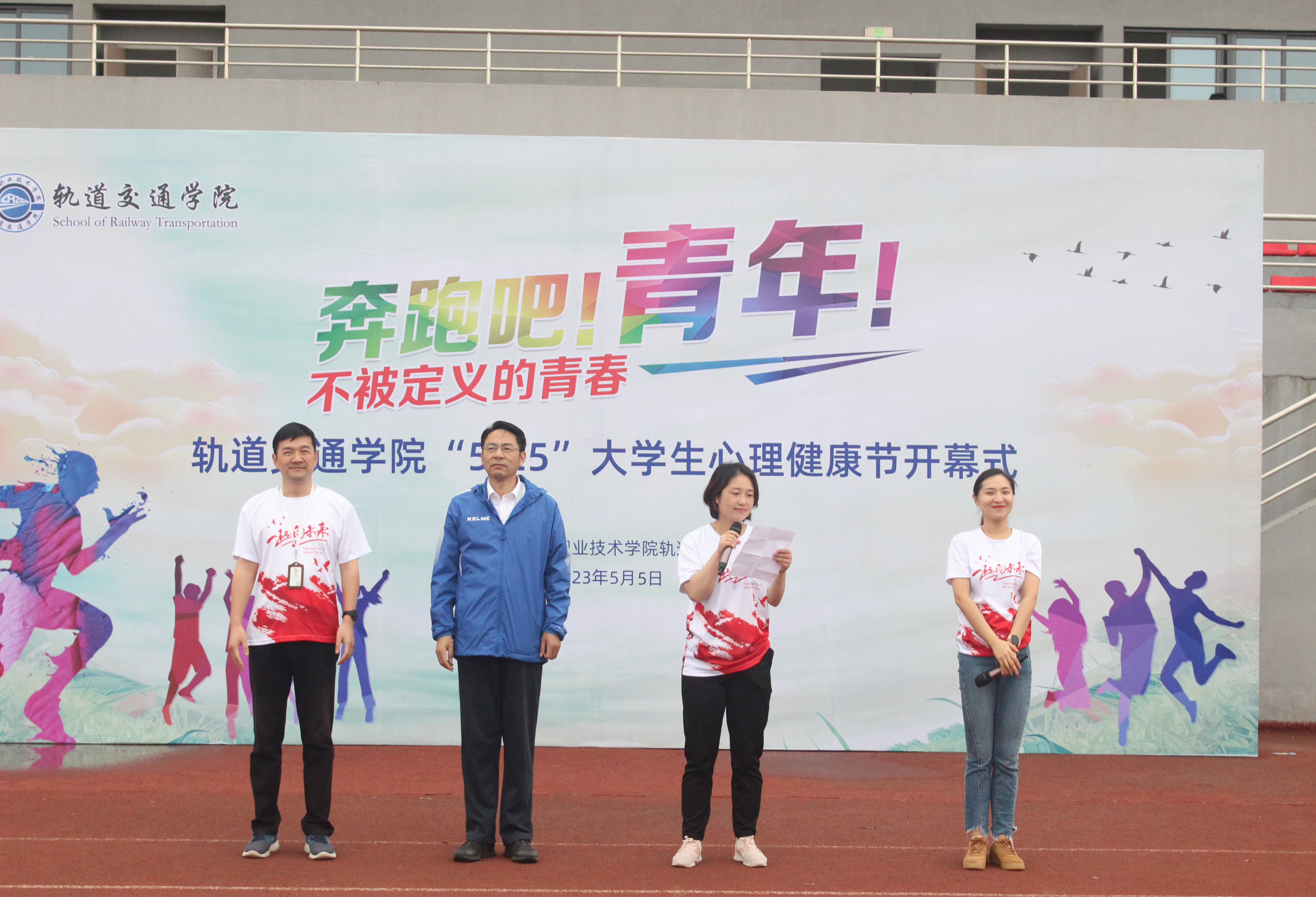 为深入学习贯彻习近平新时代中国特色社会主义思想,深入推进教育部《高等学校学生心理健康教育指导纲要》落实落细,进一步提高学生心理健康工作针对性和有效性,提高大学生心理健康素质,5月5日下午,轨道交通学院举行第二届“5.25”大学生心理健康宣传月启动仪式暨“奔跑吧青年”校园跑活动,校党委书记王杰才出席启动仪式,并与轨道交通学院全体师生共同参加校园跑步活动,启动仪式由轨道交通学院党总支书记佘海月主持。