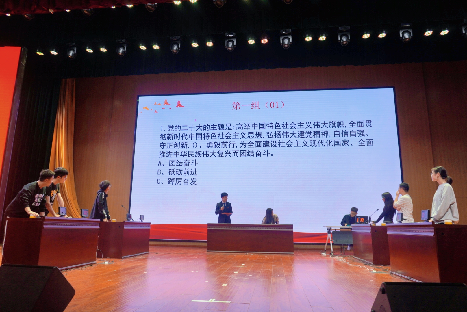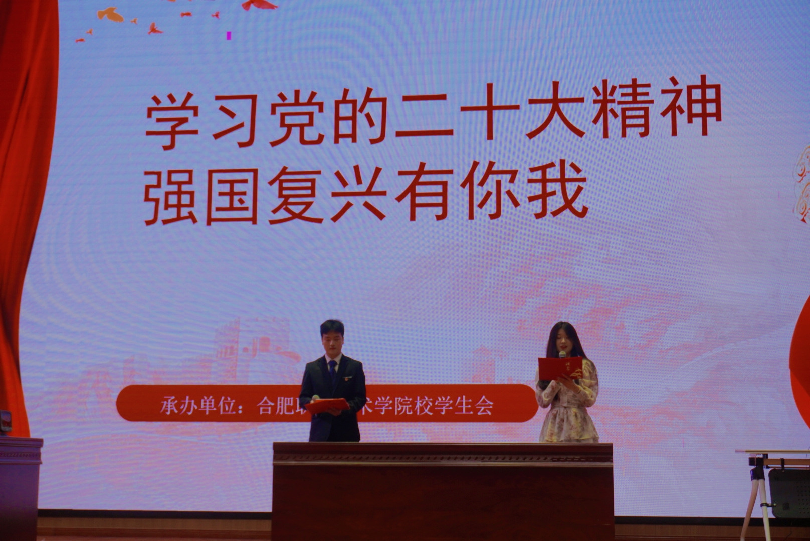 为深入学习宣传贯彻党的二十大精神,在全校学生群体中掀起学习党的二十大精神的热潮,校学生会于5月6日晚在大学生活动中心二楼礼堂组织开展“强国复兴有我”党的二十大精神知识竞答活动,100余名学生参与竞答。