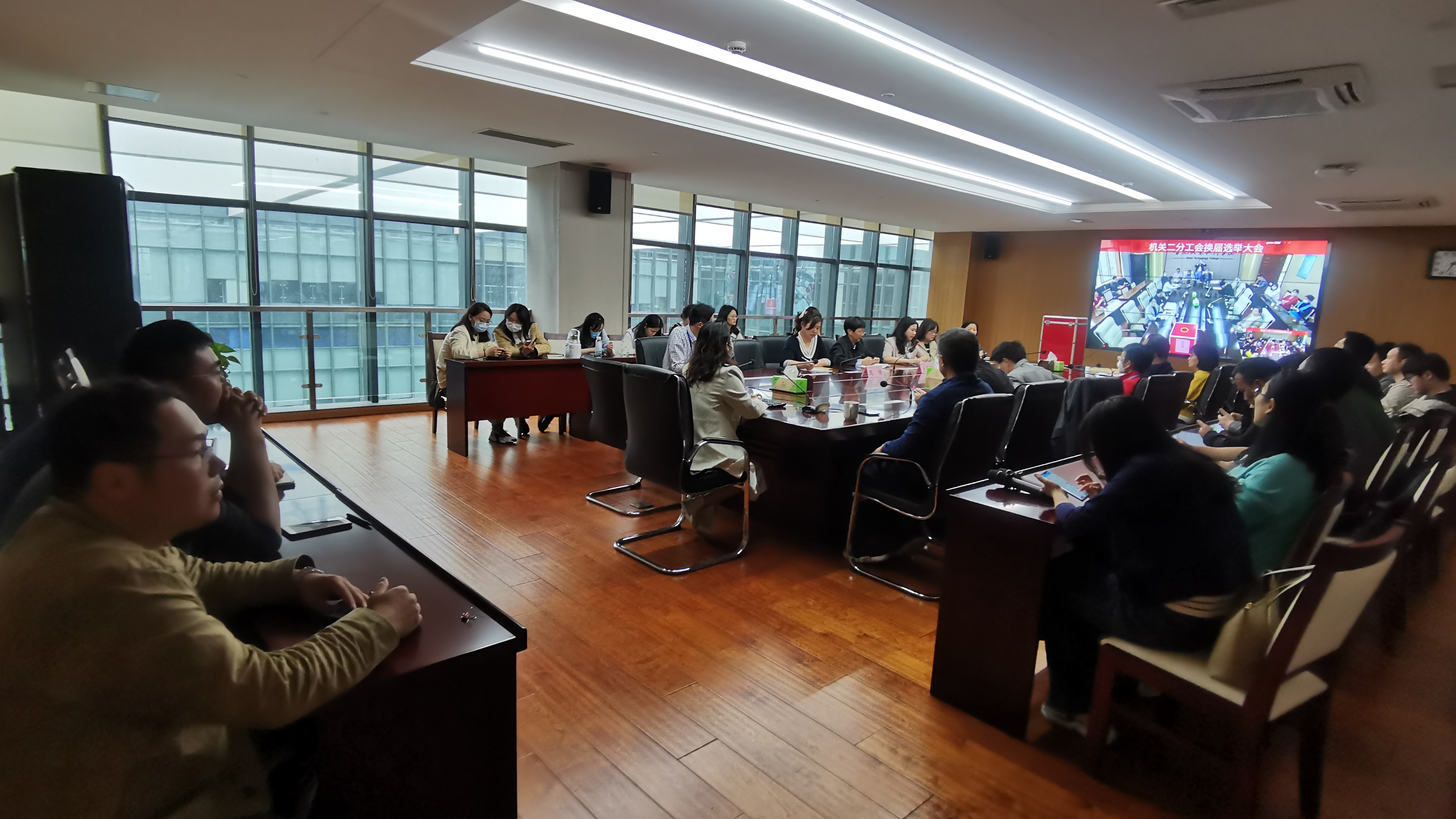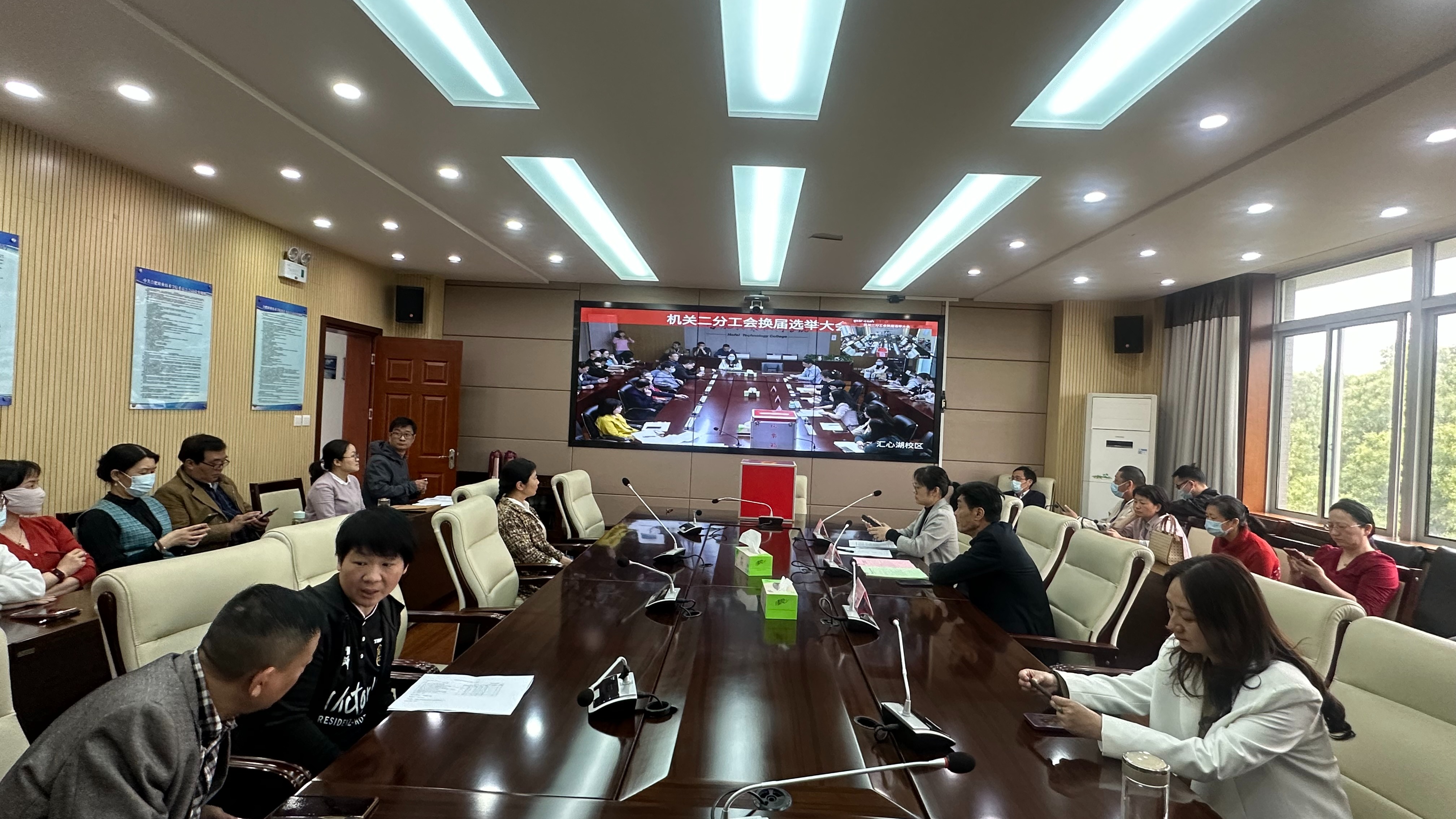 根据学校分工会换届选举工作的安排和部署,5月10日下午,机关二分公会以视频会议的方式在汇心湖校区行政楼627会议室和鼓山校区崇德楼3楼会议室同时召开分工会换届选举大会,61名教职工参加了大会。
