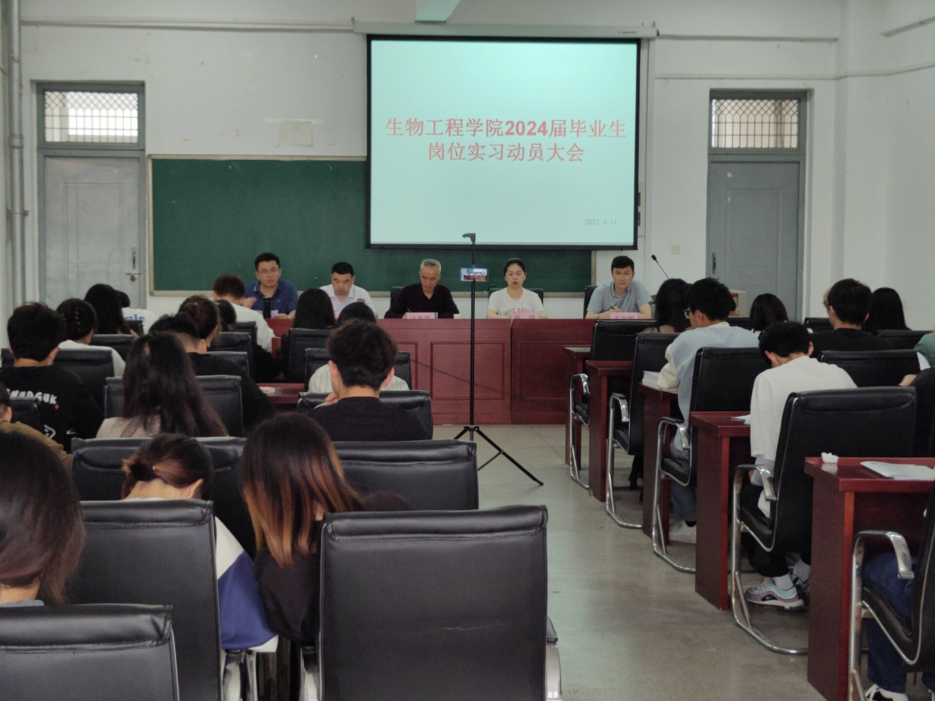 根据教学计划安排,为做好2024届毕业生的岗位实习工作,同时推进大学生实习“扬帆计划”,AC米兰中文官方网站于5月17日下午在生化楼A305召开2024届毕业生岗位实习动员大会。此次会议采用线上线下结合的方式进行,会议由学院党总支书记汪春荣主持,到现场参会的有学院院长刘修树、党总支副书记周婷、副院长方丽波、王文宇,各实习点组长及各班班长学委,其他未到现场的2024届岗位实习生通过钉钉线上观看。