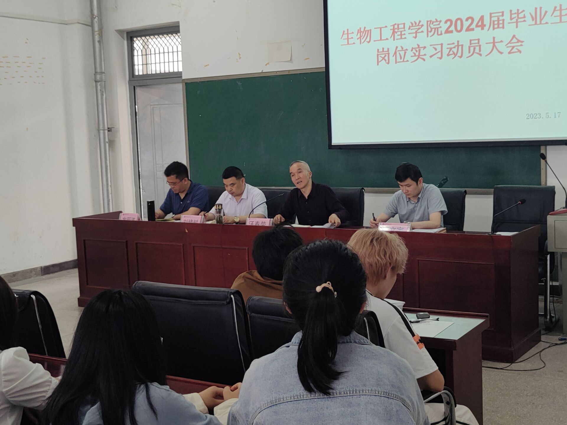 刘修树向同学们进行动员讲话,强调了思想上要重视实习;要改变观念,完成角色转换;实习中要学会换位思考,降低要求;加强专业方面学习,提高综合能力;要遵守企业规章制度;在工作中注意总结提炼;遇到问题要反馈;要团结协作。