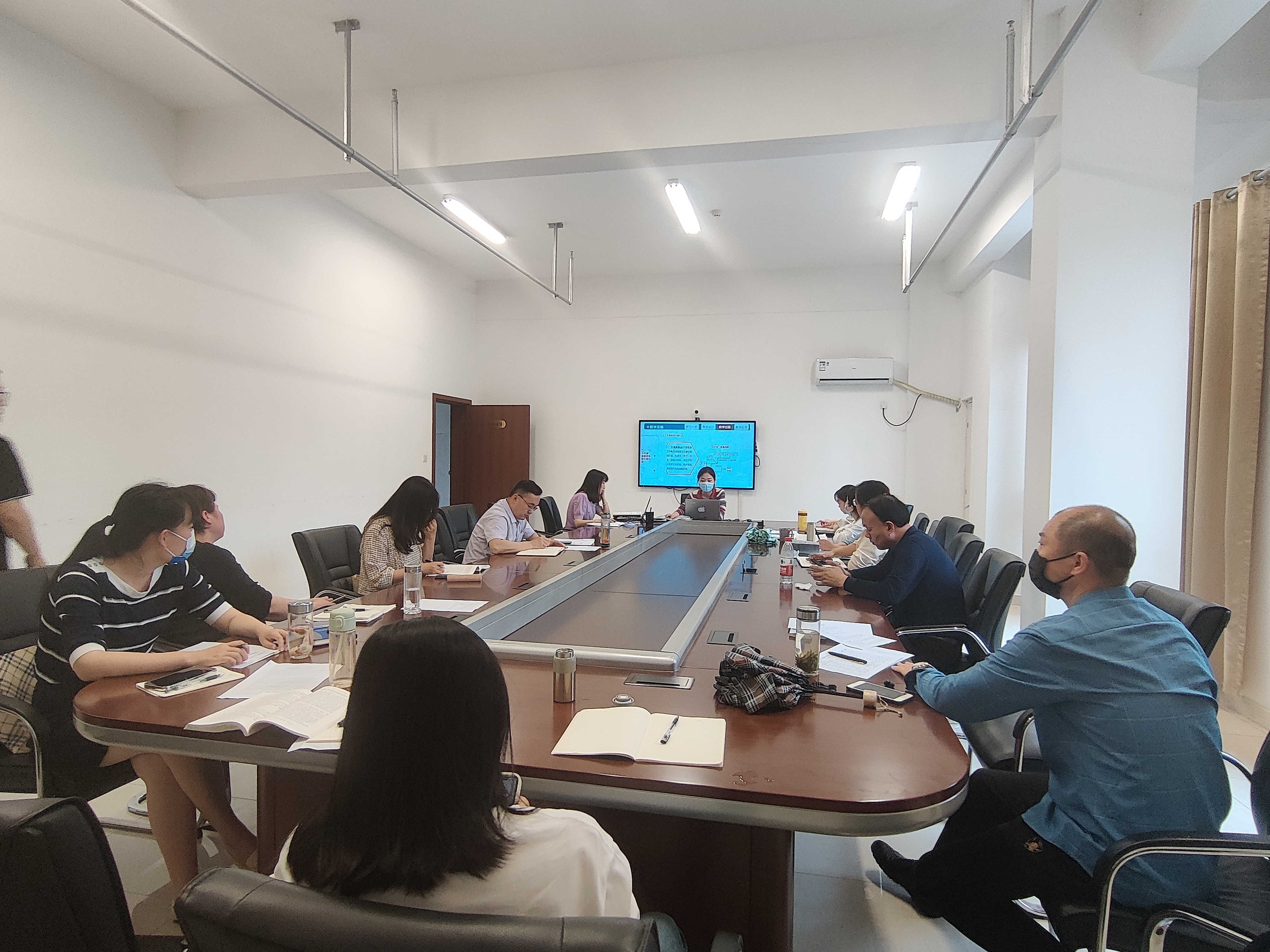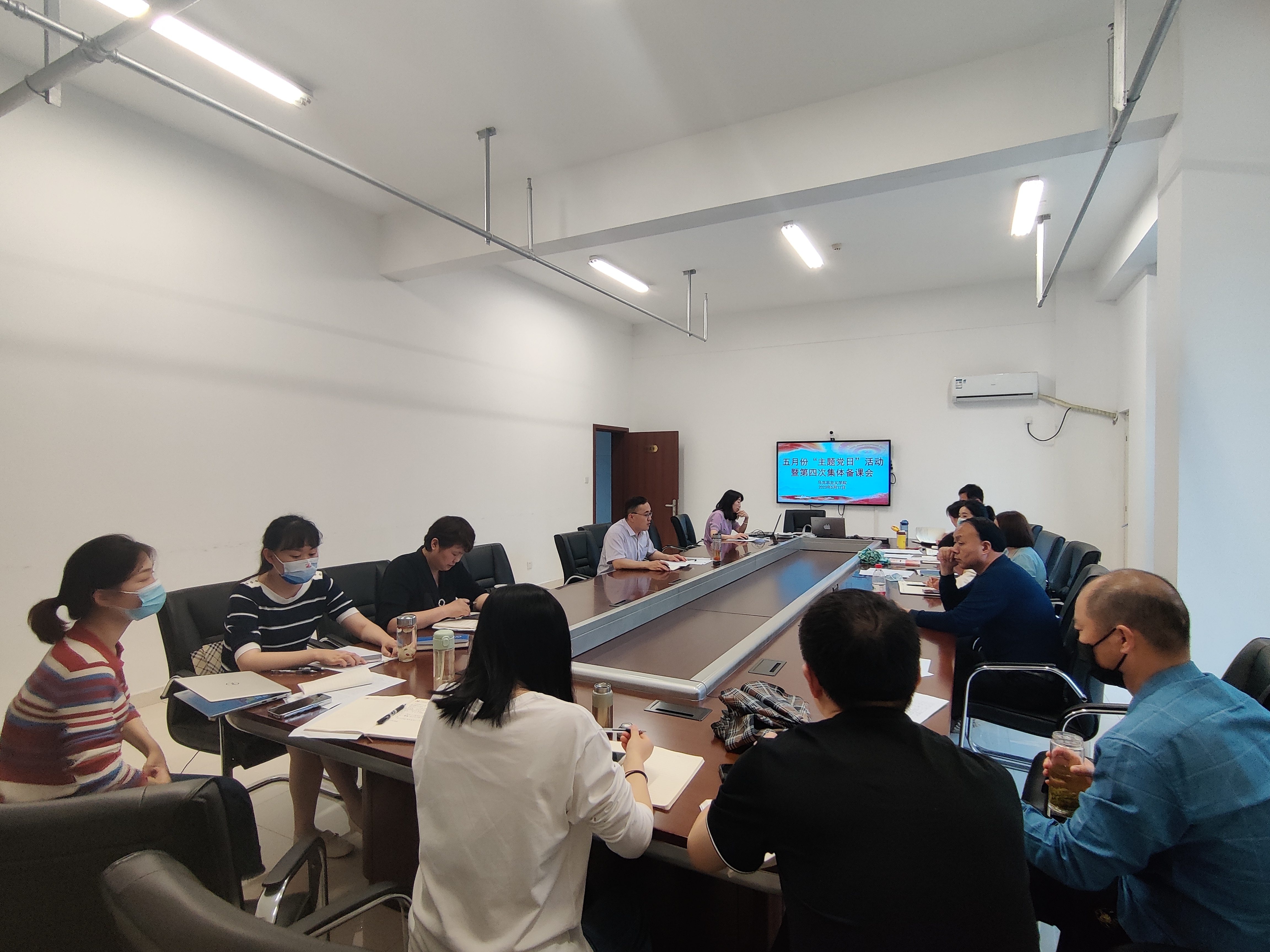 为深入学习贯彻习近平新时代中国特色社会主义思想主题教育精神,落实学校的“一改两为”要求,5月17日,马克思主义学院在汇心湖校区学院会议室组织开展了五月份“主题党日”活动暨第四次集体备课会,学院全体教职工参加了会议,会议由该院党支部书记王文飞主持。