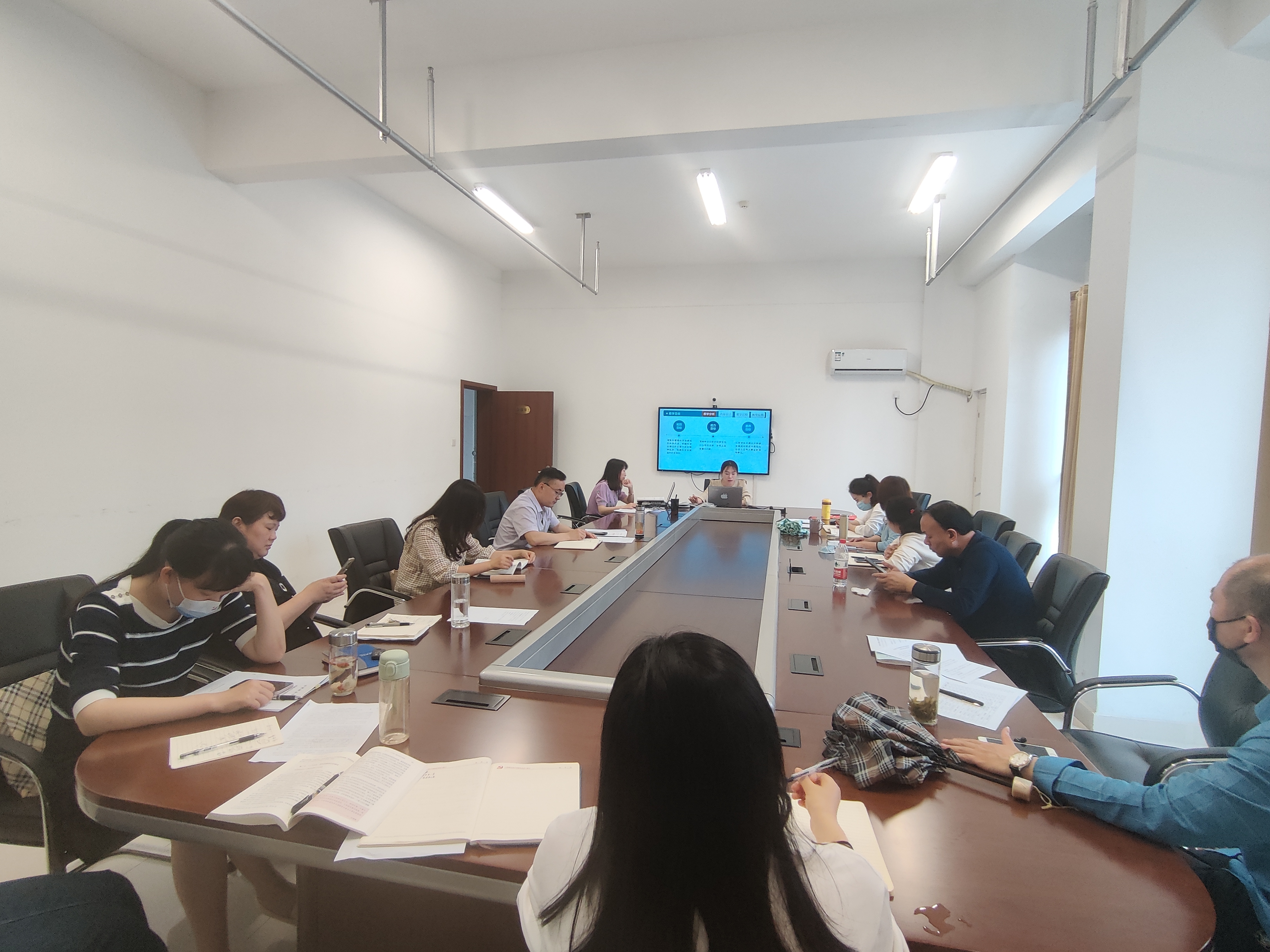 为促进党建与业务工作融合发展,按照集体备课方案和授课计划的统一安排,会议第二阶段开展了《毛泽东思想和中国特色社会主义理论体系概论》第四次集体备课会。此次备课会由陈力、陆倩倩、朱子琪三位老师分别围绕专题七、八、九进行整体设计,主讲教师围绕教学实施、教学分析、教学重难点、教学具体设计、教学反思、新旧教材对比等进行了精彩说课。胡朋、丁丹丹两位老师就如何处理好教材与教学、教材与原著的关系做了交流分享。