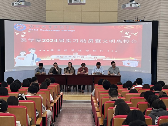 为进一步做好2024届毕业生顶岗实习工作,推进实习工作的顺利开展。根据各专业人才培养方案的差异,医学院于4月19日-5月17日,在校大学生活动中心和图书馆二楼报告厅分别举办护理类专业和医技类专业两场实习动员大暨文明离校大会。