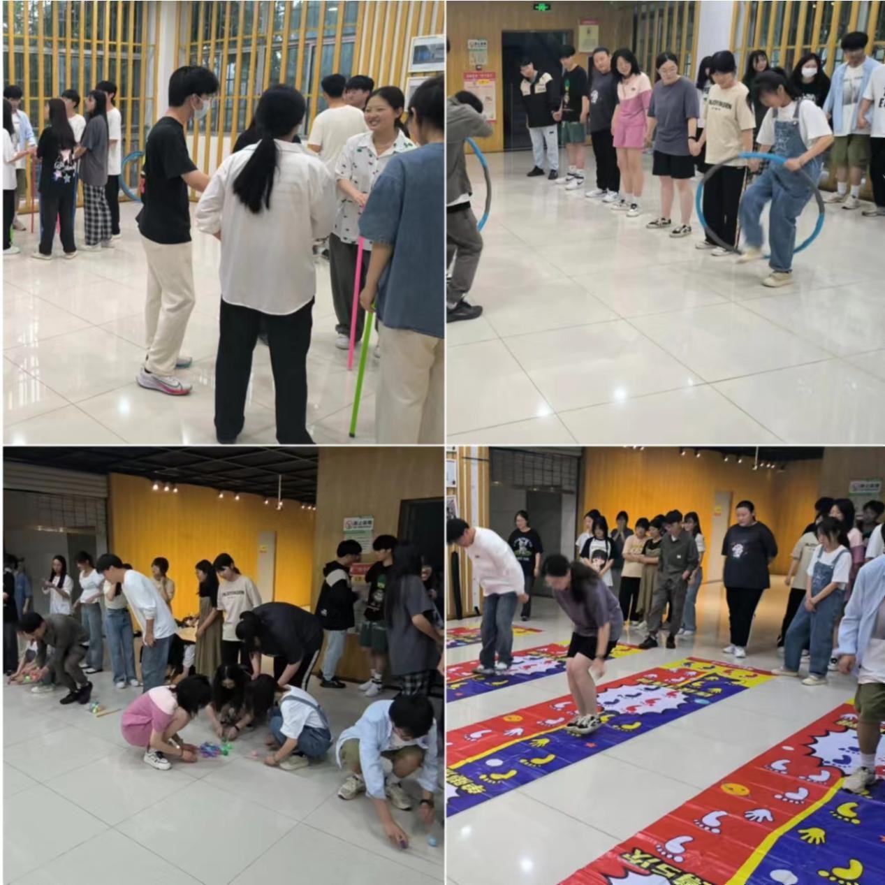 本次活动由该院二级心理辅导站教师李小龙主持。活动开始前,李老师将参加活动的同学随机分成4组。活动共设置了四个环节,“不倒森林”“筷子夹球”“一圈到底”和“手脚并用”,每个项目考察的都是小组成员间的团队协作能力。在李老师的主持和引导下,同学们积极配合,相互协作、积极商量活动对策,相互鼓励加油,现场沉浸在一阵阵欢呼雀跃声中。活动结束后,同学们相互畅谈了参与活动的体验和感悟,交流分享了各自如何融入集体和解决集体问题的经历与心得。