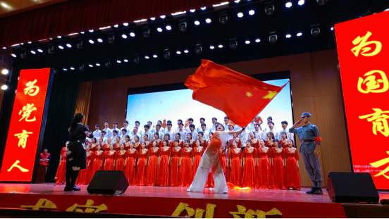 合唱比赛的现场气氛热烈,座无虚席。“走在阳光路上,我们迎着旭日,展开七彩画卷。走在阳光路上,我们迎着将来,续写东晖华丽篇章!”在主持人简洁有力的串词引导下,信息工程与传媒学院合唱队闪亮登场。规定曲目《光荣啊!中国共青团》,高昂激越的歌声唱出了合职人的自豪与担当,展示了学院师生团结一心、勇毅自强永向前的良好精神风貌;自选曲目《阳光路上》抓住了观众的视觉和听觉,把现场气氛推向高潮。优美热烈的歌声和欢快的舞蹈,赢得了观众的阵阵掌声。两首红色作品紧扣大合唱主题,饱含家国情怀,同学们嘹亮的歌声,自信大方的舞台表现力洋溢着青春的气息,充分展现了学子们在新时代新征程中积极向上、奋斗昂扬的精神面貌。