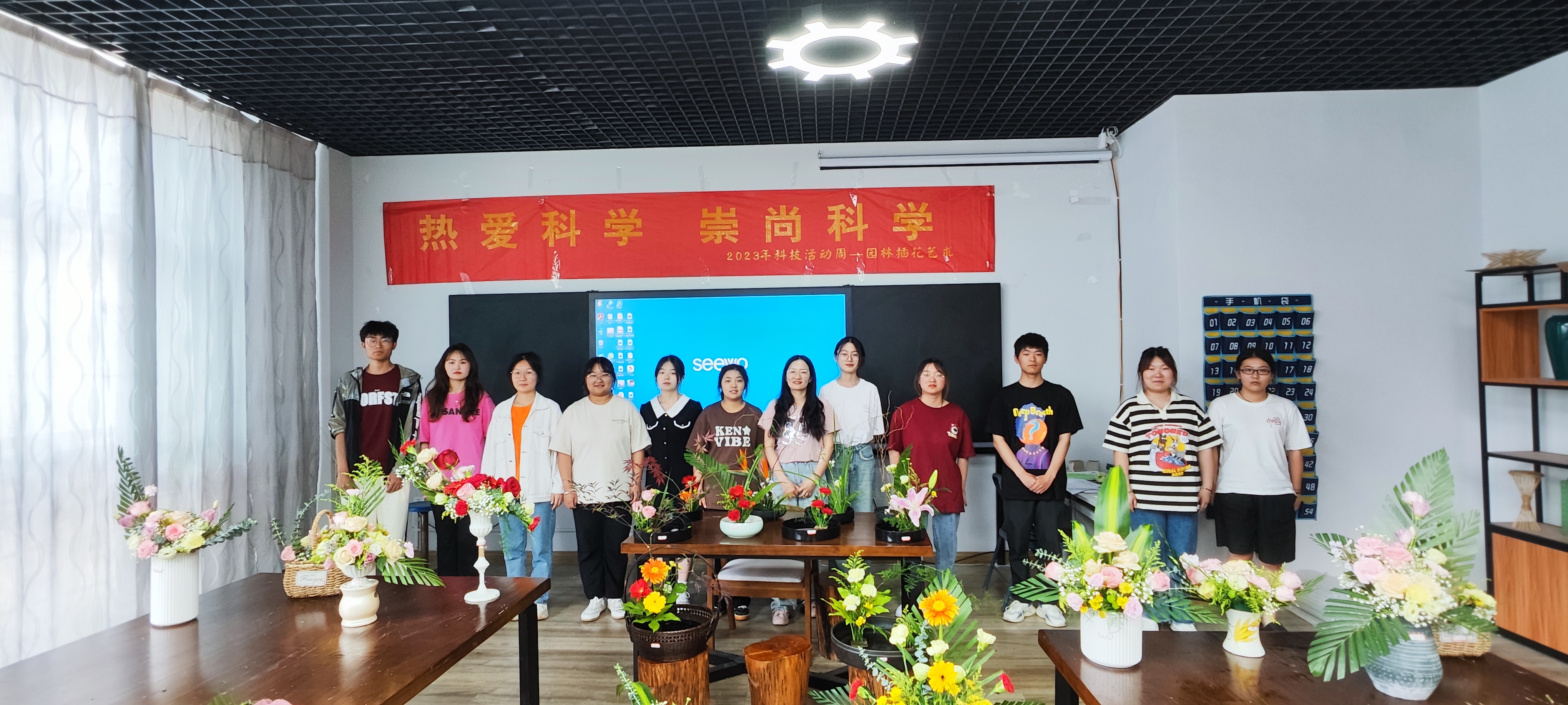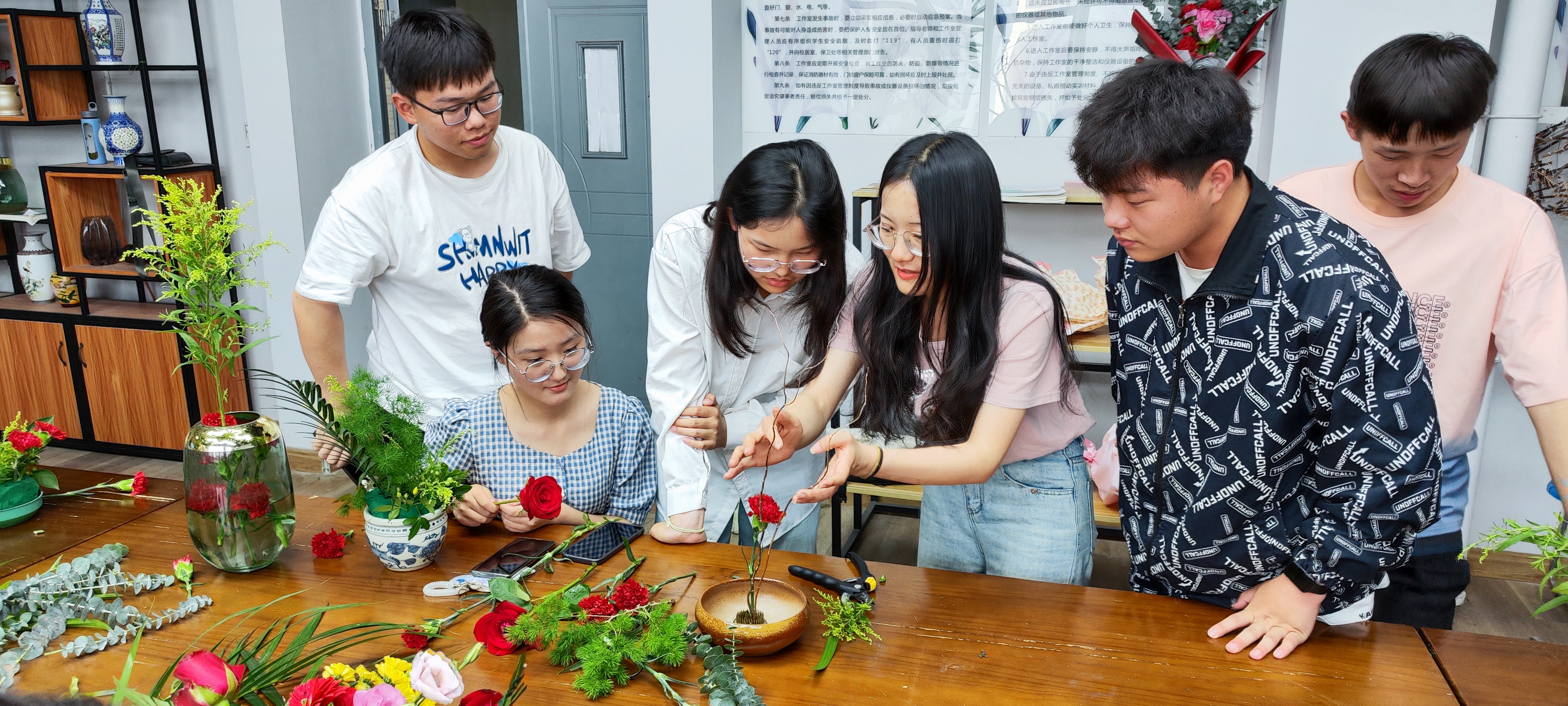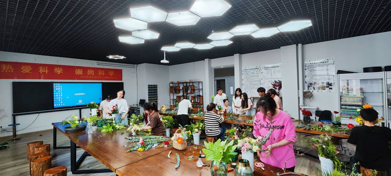 活动伊始,来自21和22级园艺、园林、园林工程技术专业的部分同学,利用课余时间亲手制作了展览作品,并精心布置了活动场景。整个花艺室内花香四溢,花艺作品整齐的陈列在展示桌上。