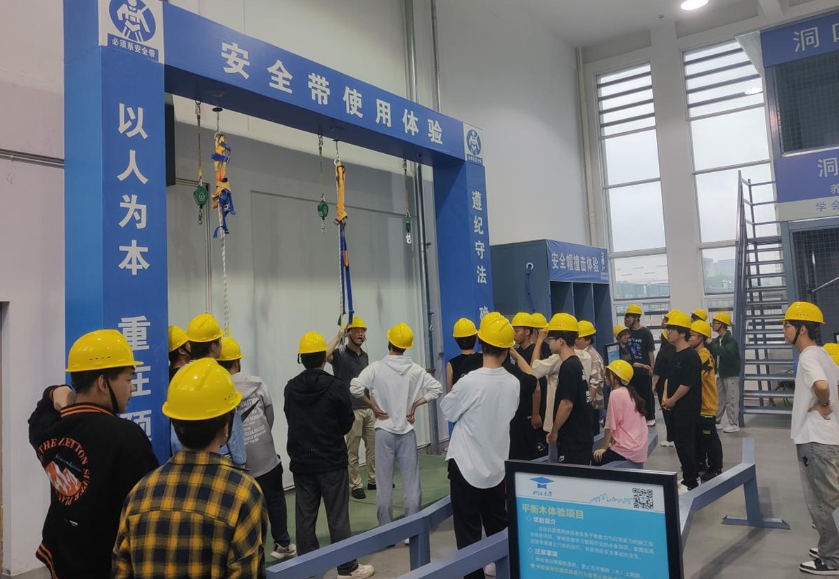 为加强2024届顶岗实习学生的安全意识,该院在科技活动周期间还组织开展了施工现场安全科普活动。建筑实训工厂作为合肥市科普教育基地创建单位,内部设有完整的施工现场安全体验设备、设施。在现场科普老师的带领下,学生进行了综合用电演示体验、安全帽撞击体验、安全带使用体验、洞口坠落体验、护栏推到体验等。同学们在体验中真切感受到施工现场安全容不得半点马虎,必须要严格按照施工标准、规范要求操作。
