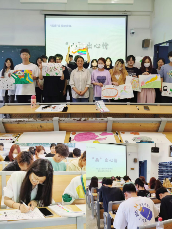 绘画也是一种情绪表达方式。通过绘画的这种非语言的工具,可以将潜意识内压抑的情感与冲突呈现出来,并且在绘画的过程中获得疏解与满足。参加活动同学在绘画的过程学会整理情绪,调节消极的情绪。