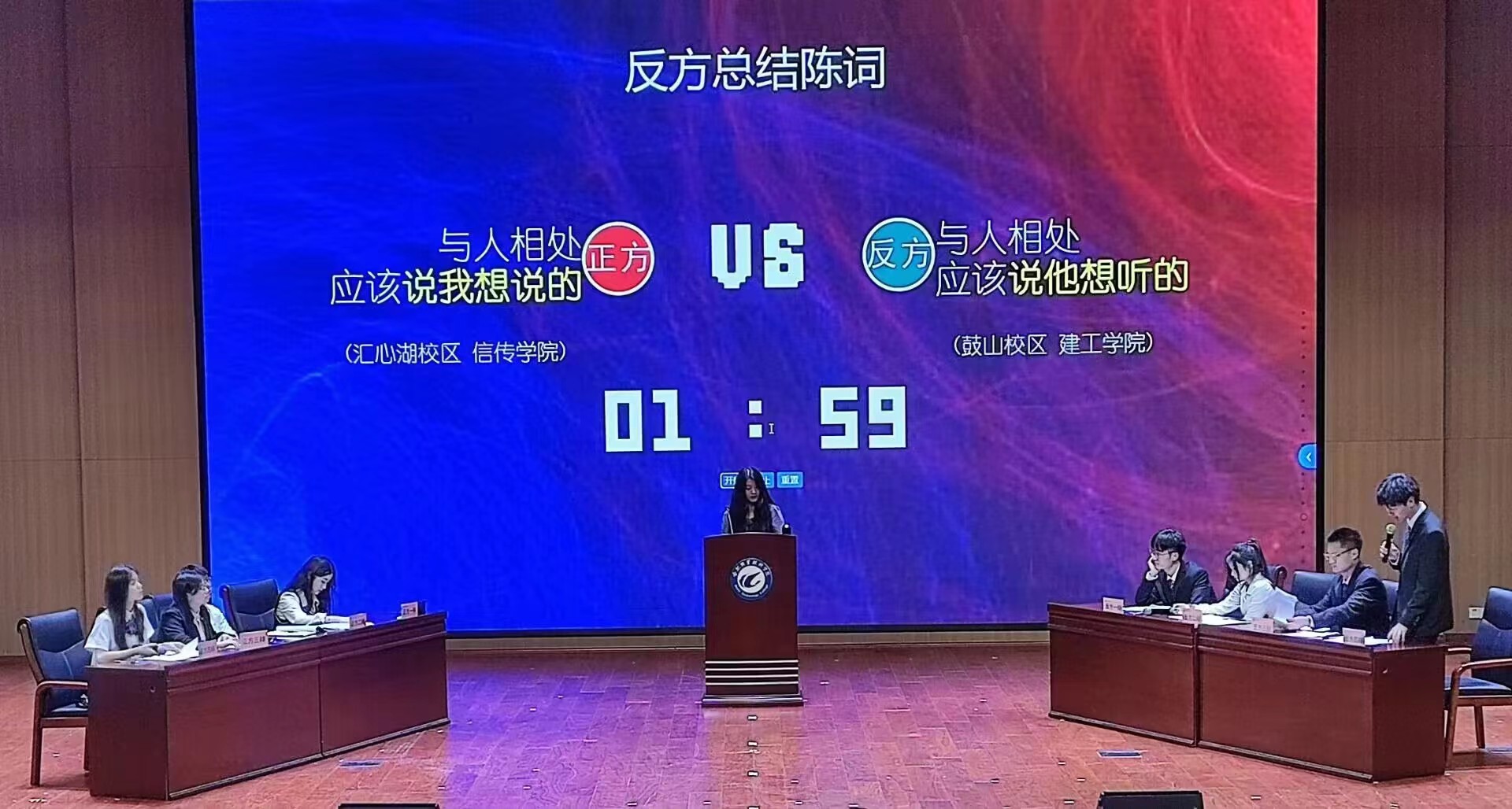 首先,各二级学院自行组队进行学院内比赛,选拔出一支四人队伍参加校级辩论赛。选手们经过激烈的辩论,建筑工程学院辩论队、AC米兰中文官方网站辩论队、信息工程与传媒学院辩论队和机电学院辩论队成功出线。5月31日,四支队伍齐聚汇心湖校区大学生活动中心进行最终决赛。辩论伊始,选手们互相自我介绍并问候在场所有人,而后双方选手就辩题展开深层次的辩论。辩论过程中,选手们雄辩滔滔,妙语连珠,台下同学凝神聆听,掌声不断,精彩写满每一时刻。最终,经过激烈的角逐,建工学院辩论队获得第一名、机电学院获得第二名、信传学院辩论队获得第三名、生物学院辩论队获得第四名。